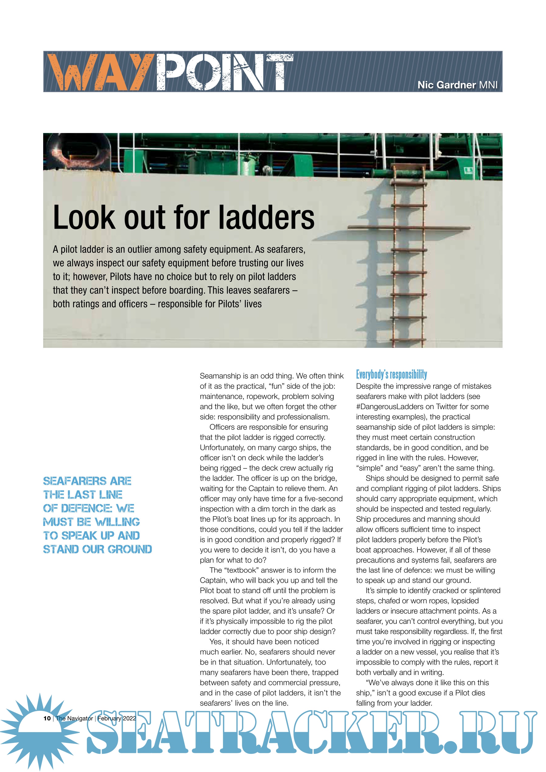 Year: 2022 Language: english Author: The Nautical Institute Genre: Periodical (magazine) Format: PDF Quality: eBook Pages count: 12 Description: The Navigator a FREE publication from The Nautical Institute that champions the role of today's professional marine navigators. Published in association with the Royal Institute of Navigation. Issue no.29 February 2020
