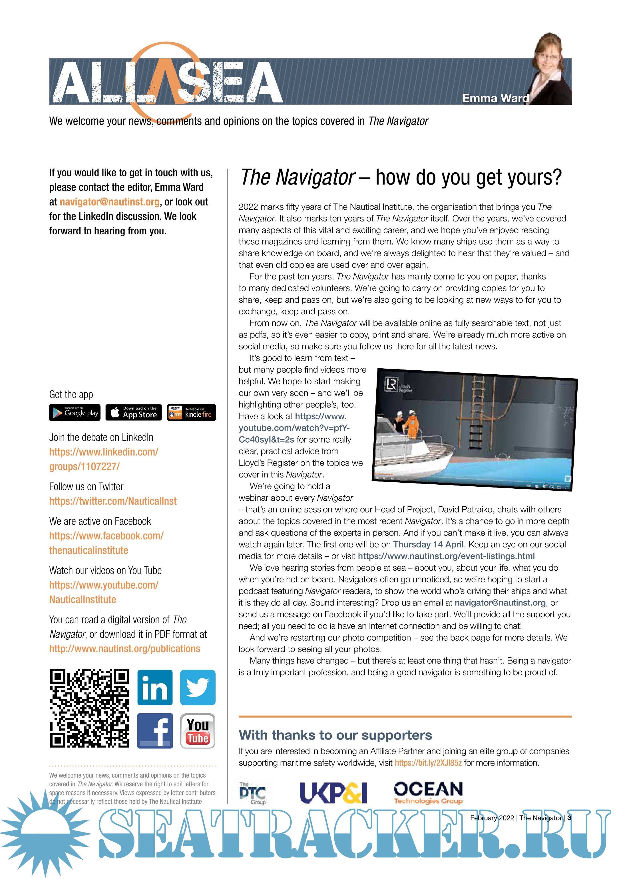Description: The Navigator a FREE publication from The Nautical Institute that champions the role of today's professional marine navigators.