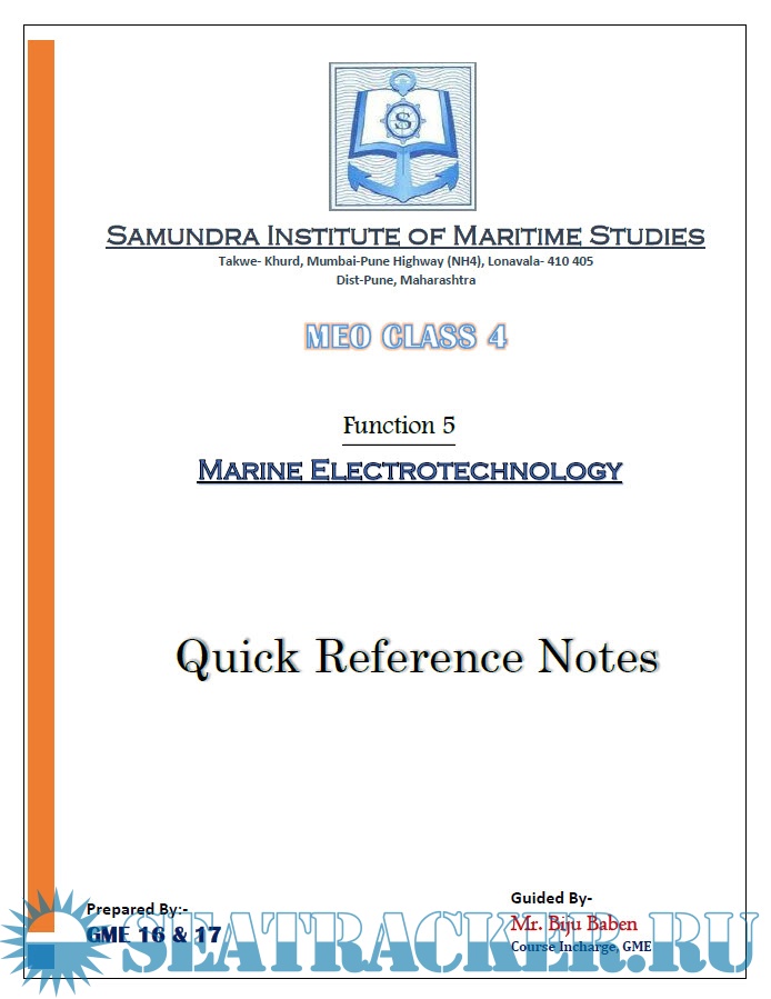 Year: 20xx Language: english Author: Samundra Institute of Maritime Studies Publisher: Samundra Institute of Maritime Studies Format: PDF Quality: OCR without errors Pages count: 81 Description: Quick Reference noted for MEO Class4, Function 5 Marine EelctoTechnology.
