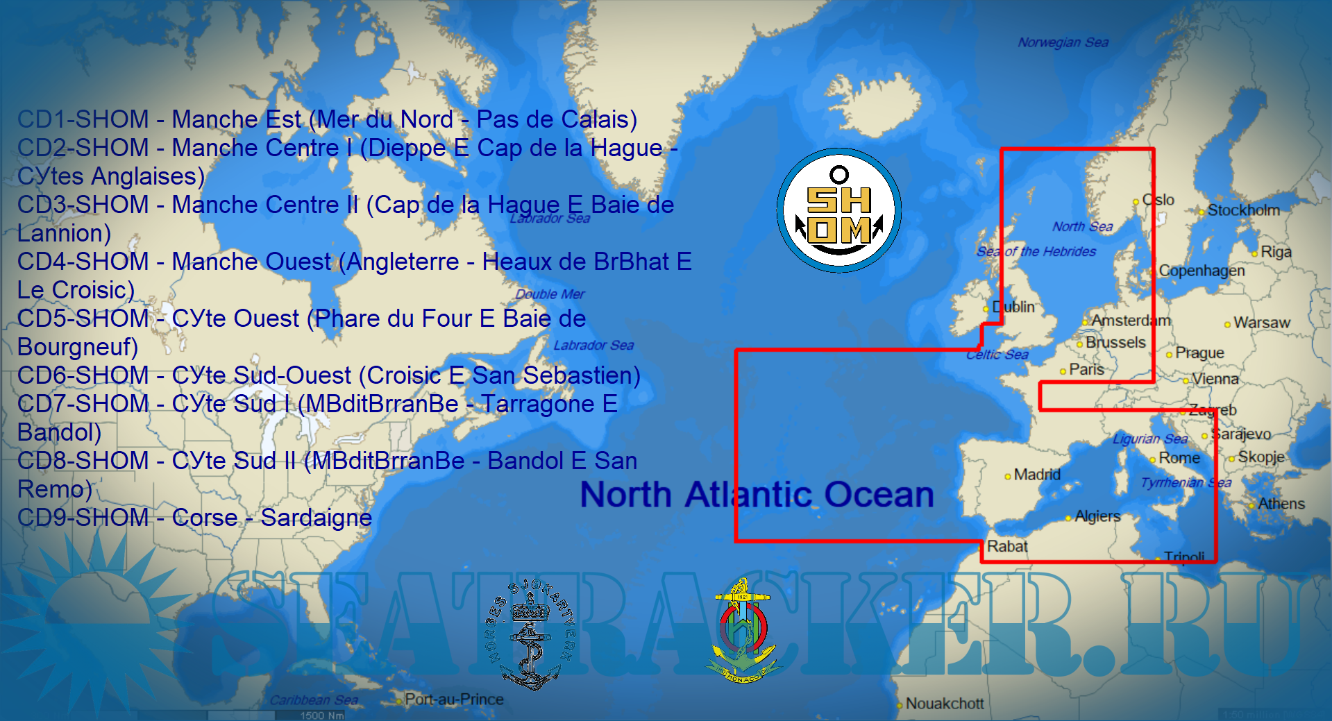 Description: Raster nautical charts BSB/KAP of Europe by SHOM (The date isn't defined).
