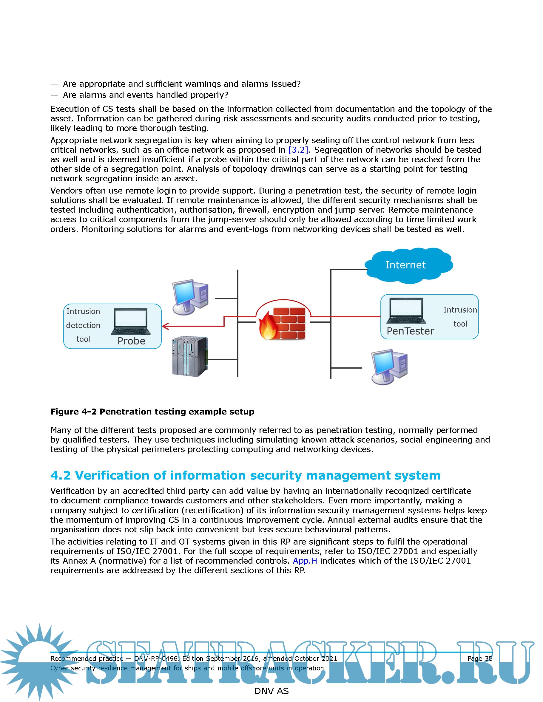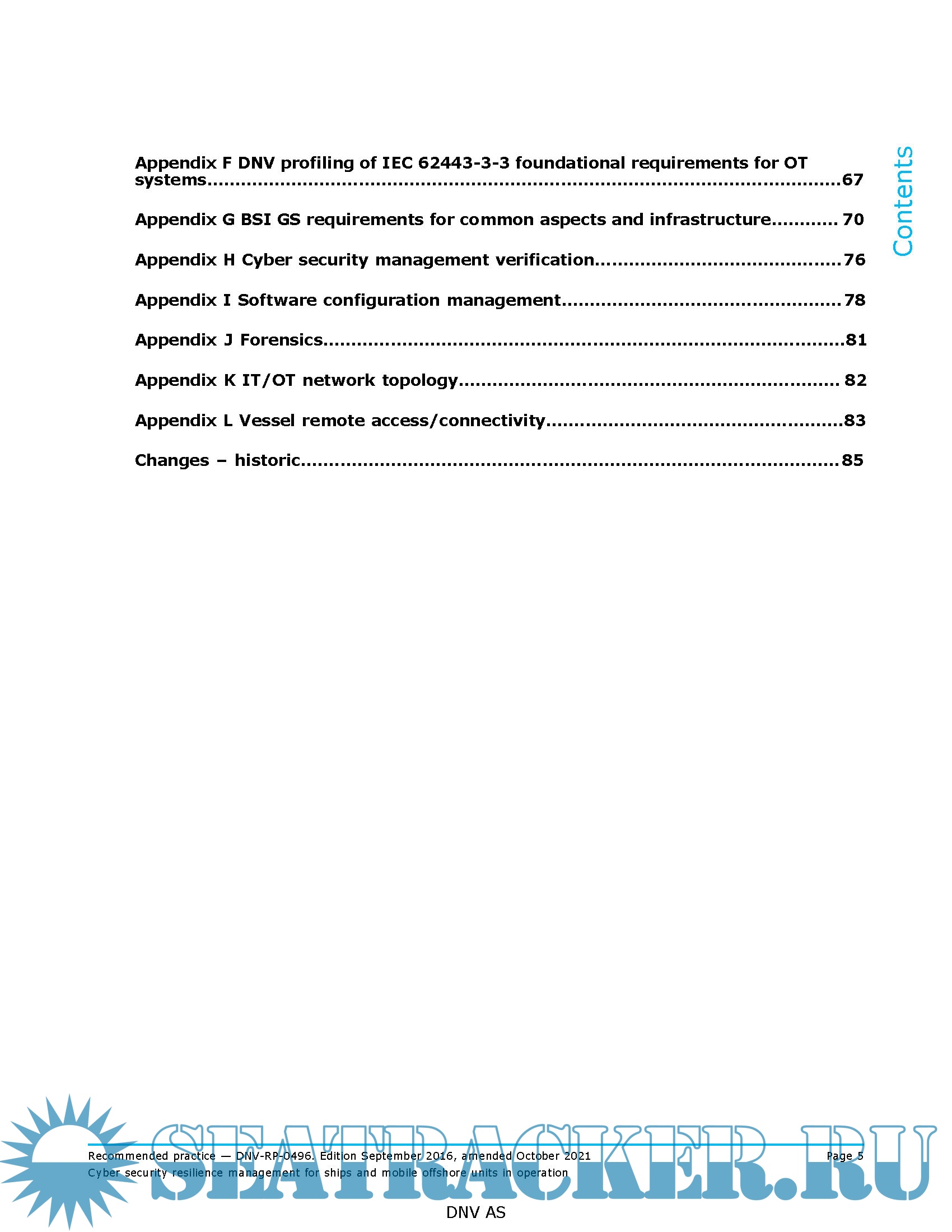 Year: 2021 Language: english Author: DNV Genre: Guide Format: PDF Quality: eBook Pages count: 86 Description: This recommended practice (RP) guides owners, managers and operators of ships and mobile offshore units towards enhanced cyber security of their assets in operation. In addition, this RP is intended to help IT and industrial automation control system professionals to join their efforts towards building and maintaining cyber security resilience of the total set of the assets and processes employed to conduct the company’s business. Following a risk based approach, the decisoins of what is critical and high priority is then left at the discretion of the organisation. Different members of the management team might have different exposure and levels of responsibility towards cyber security. This RP provides practical solutions suited to their different needs, from quick, high level to very technical in depth assessments. Improvements as well as verification and validation activities can be scaled accordingly. This was a new edition in September 2016 and has been amended latest in October 2021. The numbering and/or title of items containing changes is highlighted in red.