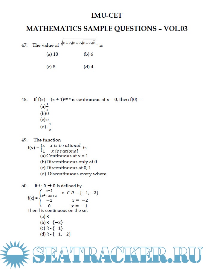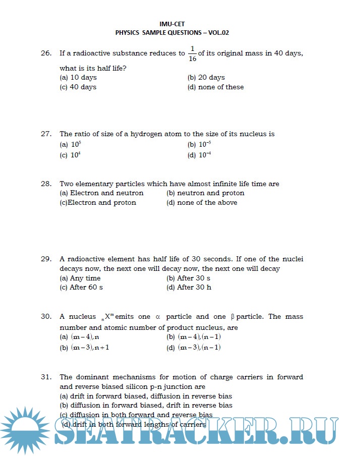 Indian Maritime University Common Entrance Test (IMU-CET) Sample Question Papers for Physics, Chemistry & Mathematics