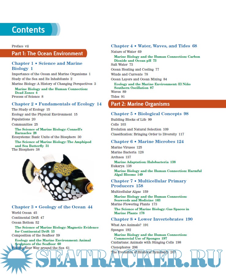 Description: Introduction to Marine Biology distinguishes itself from other texts at this introductory level by taking an ecological approach to the study of marine biology, by providing succinct coverage of key topics, and through the use of the best illustrations and photos currently available. Users will also discover that the level of the text has been broadened with additional coverage of plant, microbial, planktonic, and animal biology. In support of this emphasis, new "In Perspective" summary tables have been added to each of the marine organism chapters to provide a summary of important ecological and biological aspects of various marine organisms. Even with this broadened emphasis, this edition of Introduction to Marine Biology remains exceptionally readable. The textual material has been broken into small paragraph sections with more headings for ease of navigation, and "In Summary" statements have been added to the end of each main heading within the chapter, making it easy for students to check their understanding before reaching the end of the chapter. Furthermore, the authors have added more words to the glossary, many new illustrations, and over one hundred new photos.