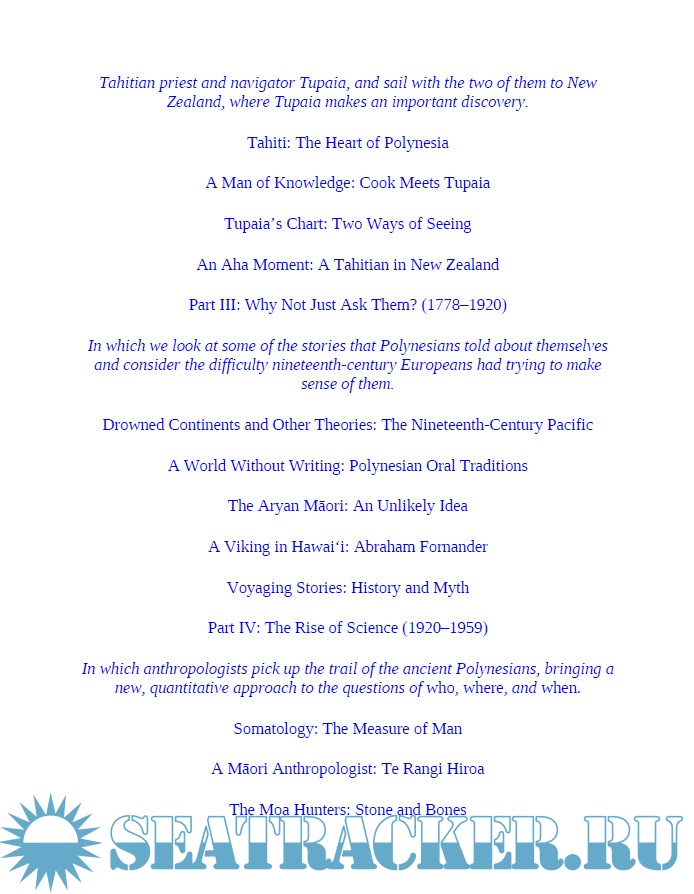 How did the earliest Polynesians find and colonize these far-flung islands? How did a people without writing or metal tools conquer the largest ocean in the world? This conundrum, which came to be known as the Problem of Polynesian Origins, emerged in the eighteenth century as one of the great geographical mysteries of mankind.