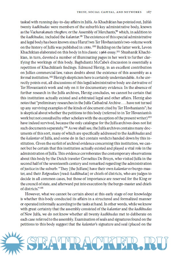 Description: Drawing on a rich trove of documents, including correspondence not seen for 300 years, this study explores the emergence and growth of a remarkable global trade network operated by Armenian silk merchants from a small outpost in the Persian Empire. Based in New Julfa, Isfahan, in what is now Iran, these merchants operated a network of commercial settlements that stretched from London and Amsterdam to Manila and Acapulco. The New Julfan Armenians were the only Eurasian community that was able to operate simultaneously and successfully in all the major empires of the early modern world--both land-based Asian empires and the emerging sea-borne empires--astonishingly without the benefits of an imperial network and state that accompanied and facilitated European mercantile expansion during the same period. This book brings to light for the first time the trans-imperial cosmopolitan world of the New Julfans. Among other topics, it explores the effects of long distance trade on the organization of community life, the ethos of trust and cooperation that existed among merchants, and the importance of information networks and communication in the operation of early modern mercantile communities.