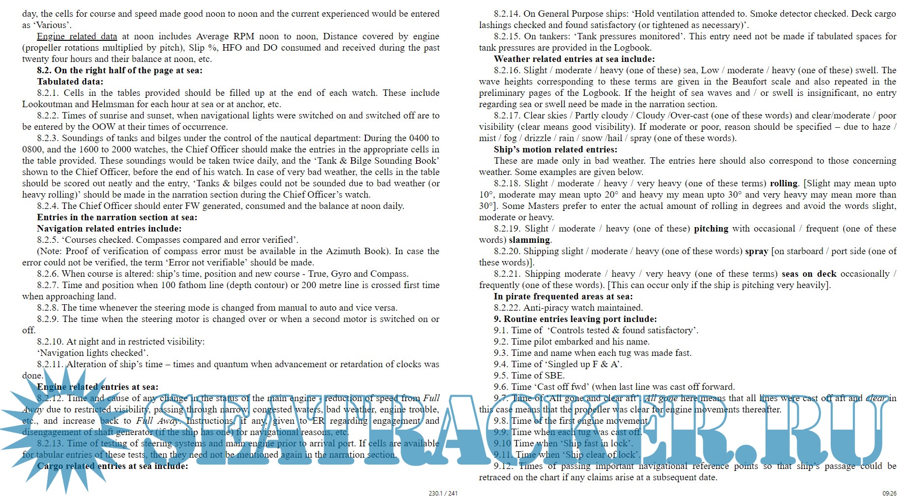 Additional info: The book has been revised to become up to date with current practices at sea mainly due to advances in electronic instrumentation.