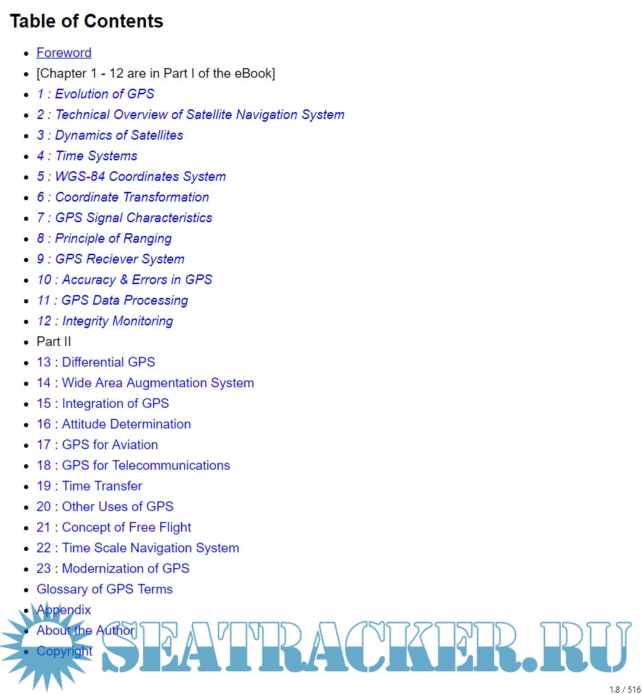 Year: 2013 Language: english Author: Pratap Singh Dhunta Genre: Textbook Publisher: PS Dhunta Consulting Group Edition: 1st Format: EPUB Quality: eBook Pages count: 516 Description: Principles of GPS is a comprehensive technical treatise on Global Positioning Systems. The book covers technical overviews of satellite and time systems, GPS signal and receiver systems as well as techniques in data processing and integrity monitoring. With hundreds of technical illustrations, each topic is explained in systematic detail that make it easy to grasp the concepts. The author also offers a perspective on GPS applications and Time transfer. The book is invaluable for practicing engineers, technicians and students as a learning tool as well as a handy reference guide. Additional info: Please note this is Part II of the two part series "Principles of GPS".
