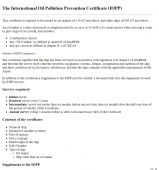 The exploration continues MARPOL The International Oil Pollution Prevention Certificate (IOPP) International Pollution Prevention Certificate for the Carriage of Noxious Liquid Substances in Bulk (NLS) The International Sewage Pollution Prevention Certificate International Air Pollution Prevention Certificate (IAPPC) International Energy Efficiency (IEE) Certificate Statement of Compliance for Fuel Oil Consumption Reporting Engine International Air Pollution Prevention Certificate Antifouling Ballast