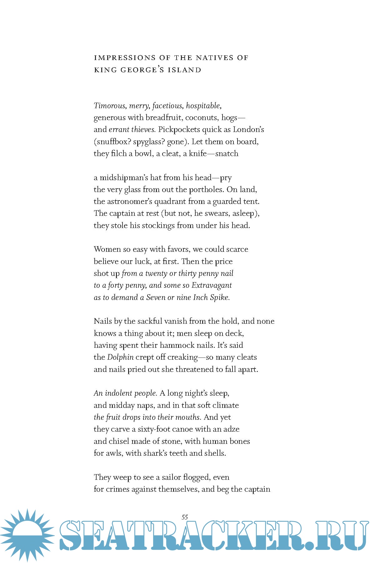 Description: Deeply researched and deeply felt, Passing Worlds is a poetic reimagining of the first encounters of Europeans and Tahitians during the historic voyages of Captain James Cook. Although the expeditions brought back impressive stores of knowledge and new plant and animal specimens, those scientific rewards came at a high human cost. Examining both imperialism and exploration, Holmes illuminates the cultural exchanges, clashes, miscommunications, and friendships that developed during these European sojourns, including the Tahitians’ impressions of their strange visitors, the ways the British played into island politics, and how the “discovery” of Tahiti—with its easy life, absence of poverty, and liberal sexuality—influenced European ideas.