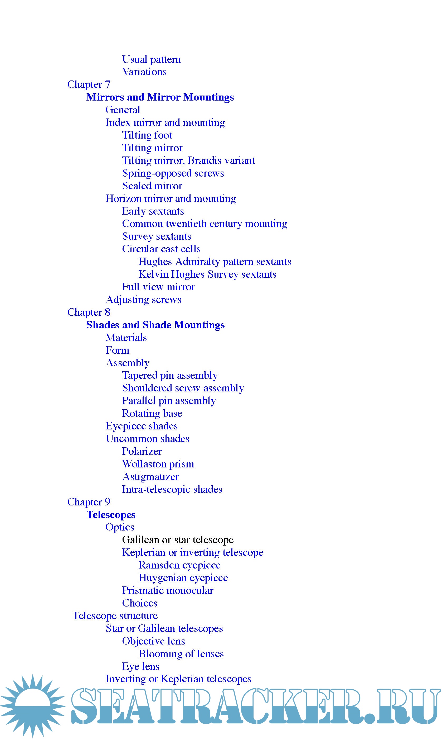 Year: 2010 Language: english Author: W. J. Morris Publisher: Paradise Cay Publications Edition: 1st (October 26, 2010) ISBN: 9780939837892 Format: EPUB/PDF/AZW Quality: eBook Pages count: Multiple Description: The Nautical Sextant reveals in pictures, prose, and perspective the experience and knowledge gained by the author from years of acquiring, studying, and restoring sextants from earlier times and from around the world. This fascinating book owes much of its attraction to the expert description and photos of the mechanics of the sextants and their subassemblies. It is also the story of how different manufacturers, in different times and places, solved the same mechanical problems in different ways in order to perfect one of the most accurate mechanical devices ever produced by man. All of this is complemented by an historical overview to the current day, an overview which has never been published until now. The Nautical Sextant will be of particular value not only to navigators, but also to restorers, collectors, students of technology, curators, and sextant dealers. With its bibliography and extensive use of footnotes, this book will certainly become a classic in its field. This book is as advertised; a comprehensive source of information about sextants. Down to the nuts and springs in the various movving parts. Up to you to know what you want. If you are looking for instructions on using your setant, this is not the book. If you need to repair or restore your sextant, this is it.