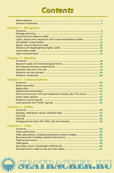 Meticulously researched, it includes a huge amount of information of value to small craft navigators: tide tables, tidal streams and tidal gates; secondary port differences; 2,500+ waypoints; radio data; light recognition; weather information; principal lights; IALA buoyage; international codes and flags; sun/moon rise/set times; emergency information.