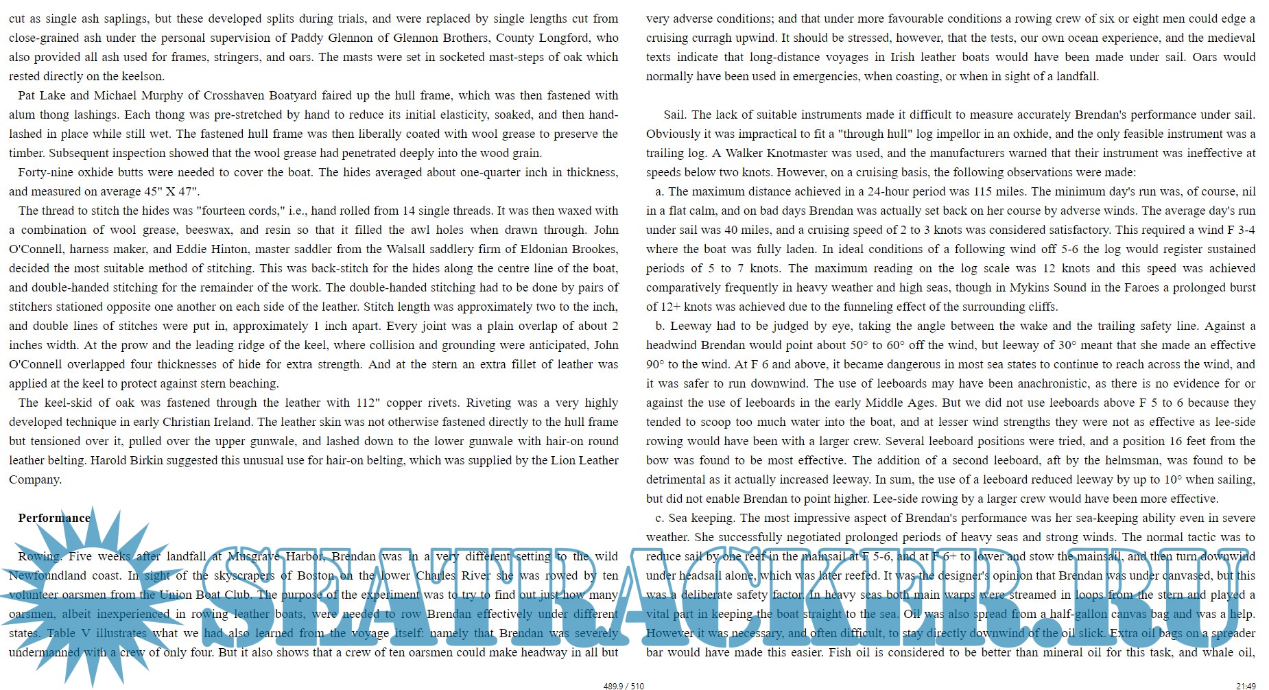 The vessel comprised forty-nine ox hides stitched together in a patchwork and stretched over a wooden frame. This leather skin was only a quarter of an inch thick. Yet Severin and his crew sailed Brendan from Brandon Creek in Dingle to Newfoundland, surviving storms and a puncture from pack ice.