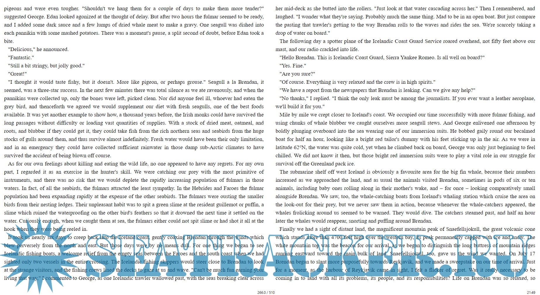 Year: 2018 Language: english Author: Tim Severin Genre: History Publisher: Lume Books Format: EPUB Quality: eBook Pages count: 510 Description: It has been described as the greatest epic voyage in modern Irish history. Tim Severin and his companions built a boat using only techniques and materials available in the sixth-century A.D, when St Brendan was supposed to have sailed to America. The vessel comprised forty-nine ox hides stitched together in a patchwork and stretched over a wooden frame. This leather skin was only a quarter of an inch thick. Yet Severin and his crew sailed Brendan from Brandon Creek in Dingle to Newfoundland, surviving storms and a puncture from pack ice. The Brendan Voyage is Tim Severin's dramatic account of their journey. Brilliantly written and impeccably researched, it is a classic of modern exploration and has been translated into 27 languages. It conveys unforgettably the sensation of being in a small, open boat alone in the vastness of the North Atlantic, visited by inquisitive whales, reaching mist-shrouded landfalls, and receiving a welcome from seafaring folk wherever the crew touched land.