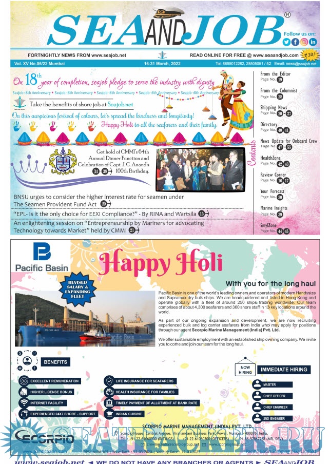 Year: 2022 Language: english Author: Sea Line Group Genre: Periodical (magazine) Publisher: Sea Line Group Edition: Vol.XV No.06/22 Format: PDF Quality: eBook Pages count: 68 Description: The Sea and Job magazine launched in May 2007, was the second venture of Sea Line Group succeeding Seajob.netBringing the much renowned essence to the Group, the Sea and Job Magazine quickly gained popularity, becoming the No. 1 Shipping Magazine that came to be widely circulated all over India. Sea and Job over the years has evolved as the most trusted, ethical, objective and read maritime publication that possesses a large database of subscribers from various verticals in the industry. The magazine provides informative and interesting articles covering not just the shipping world but also the world outside it. Sea and Job is also a medium for the shipping/ manning companies to advertise marine jobs and also to promote their organization by publicizing internal activities like seminars, sports events and parties.Some notable endeavors of the magazine include the Know Your Recruiter Column, the Sailing Episodes Column and the Marine Insights section. The consistent efforts and the dedication to provide extraordinary services to the industry has resulted in the magnifying popularity and patronage of Sea and Job Magazine currently extending to 70-72 pages.