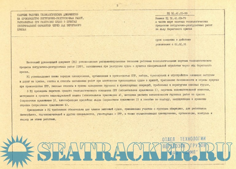 Сборник рабочих технологических документов на производство ПРР выполняемых при разгрузке судов в пунктах беспричальной обработки через лед берегового припая