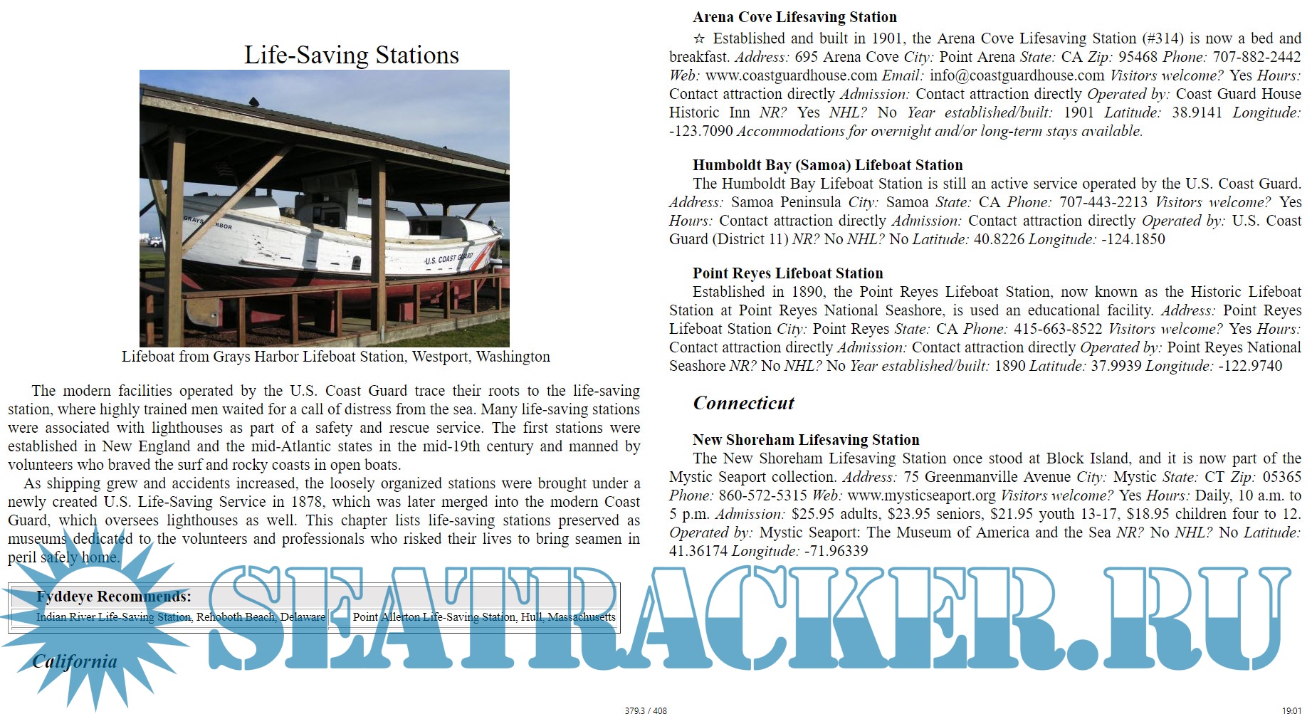 Chapters on lightships and historic life-saving stations, including availability of overnight accommodations