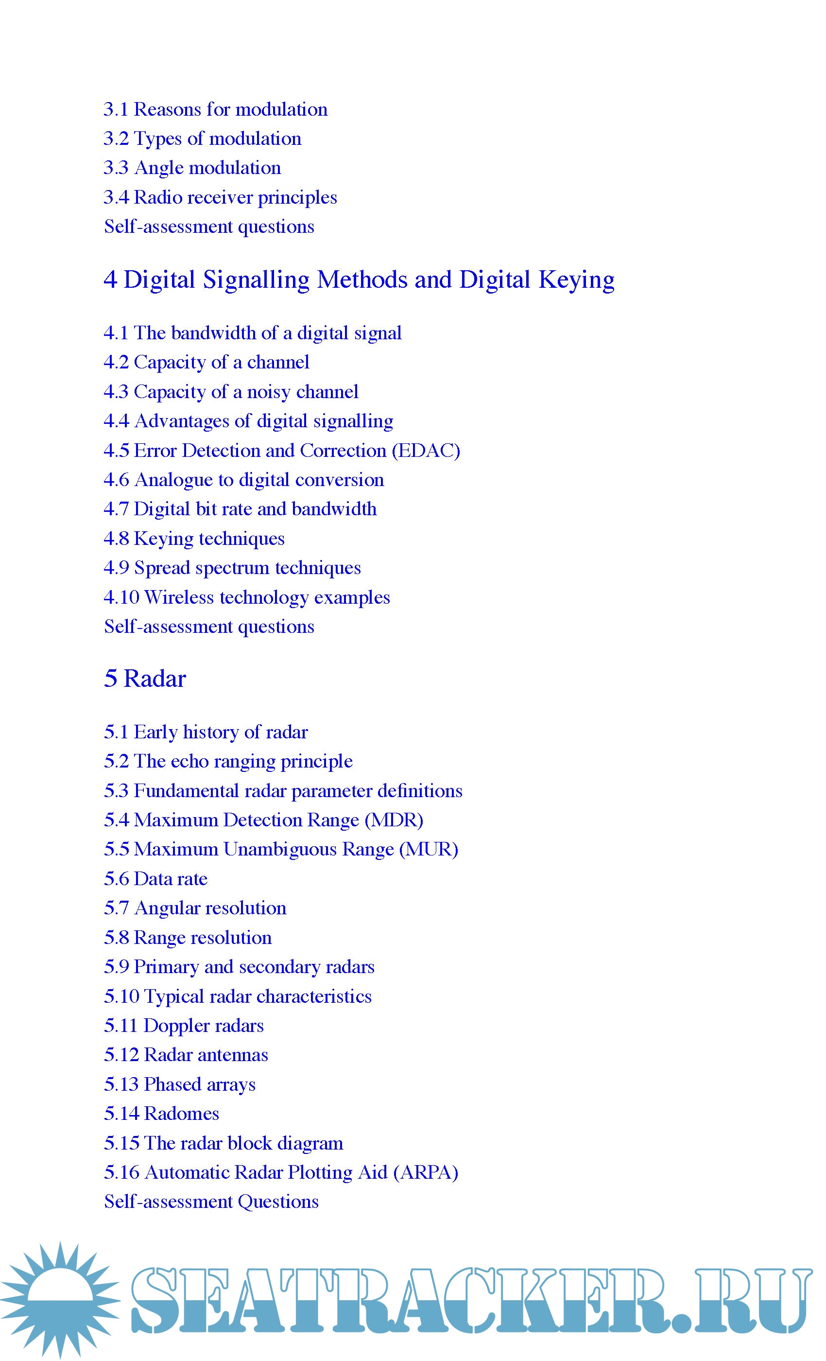 Year: 2017 Language: english Author: Christopher Lavers Genre: Other Publisher: Thomas Reed Edition: 1st June 6, 2017 ISBN: 9781472922205 Format: EPUB/PDF/AZW Quality: eBook Pages count: 256 Description: Reeds Introductions: Essential Sensing and Telecommunications for Maritime Applications covers all fundamental and essential theoretical maritime physics principles which underpin modern marine sensors and telecommunications devices as needed by marine users, such as those in the navy, coastguard, merchant shipping, and users of pleasure craft. For safety at sea, it is vital that maritime users have at least a basic understanding of the key concepts upon which many essential modern sea-going sensors and communications devices now operate. Knowledge regarding electromagnetic waves and electromagnetic devices is an established merchant navy sea service requirement, particularly for the Standards in Training and Certification in Watchkeeping (STCW95) qualification in various Maritime Coastguard Agency exams, but it is also a practical matter for the amateur as well. This vital introductory book is written as simply as possible to educate an increasing number of maritime users who wish to become familiar and competent with the latest technologies, as well as a growing number of overseas students for whom English is not their first language. This volume provides a comprehensive study of maritime sensors and telecommunications principles and provides a firm introduction to the textbooks in the Reeds Marine Engineering series.
