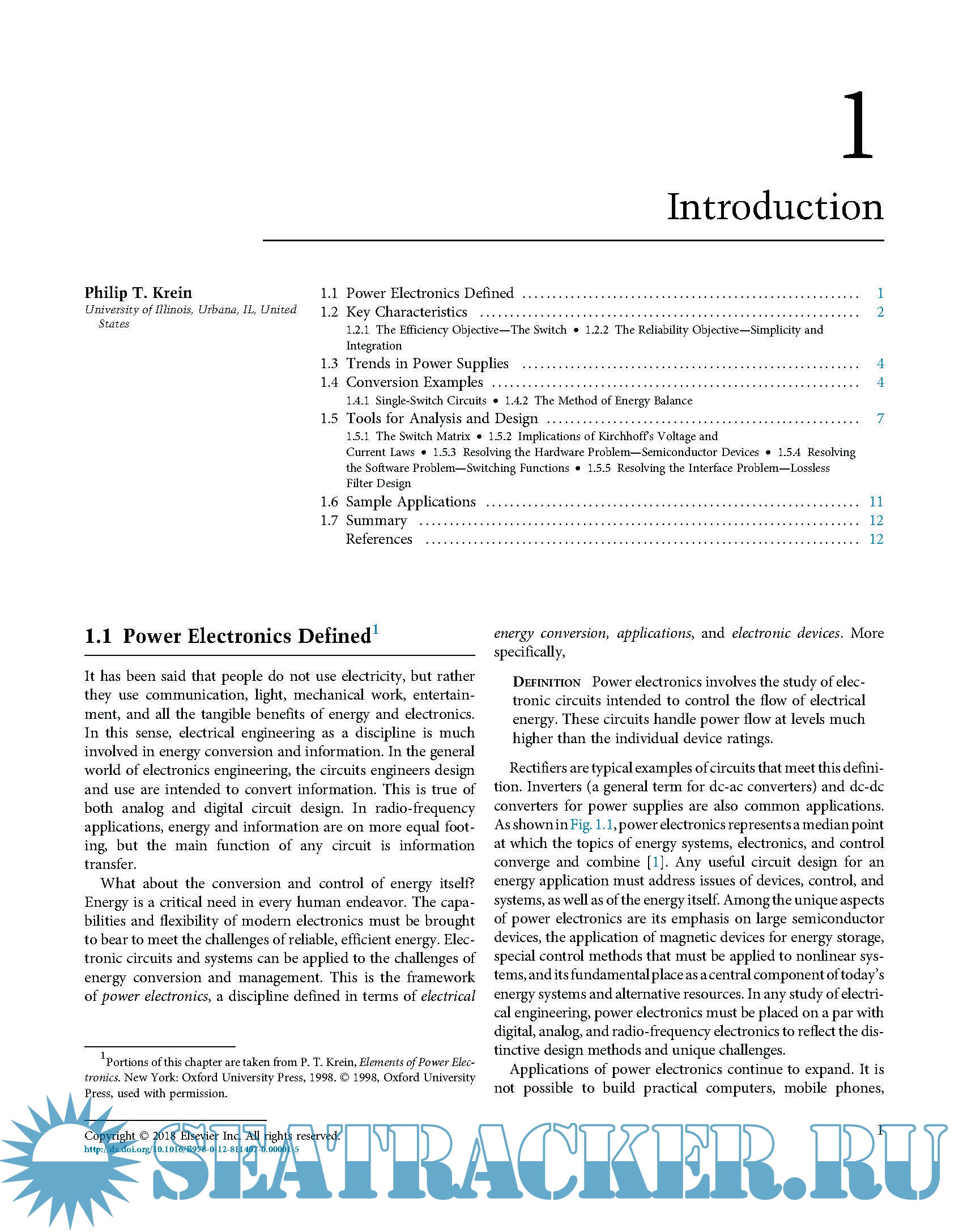 Year: 2018 Language: english Author: Muhammad H. Rashid Genre: Other Publisher: Butterworth-Heinemann Edition: 4th Edition - September 9, 2017 ISBN: 9780128114087 Format: PDF Quality: eBook Pages count: 1510 Description: Power Electronics Handbook, Fourth Edition, brings together over 100 years of combined experience in the specialist areas of power engineering to offer a fully revised and updated expert guide to total power solutions. Designed to provide the best technical and most commercially viable solutions available, this handbook undertakes any or all aspects of a project requiring specialist design, installation, commissioning and maintenance services. Comprising a complete revision throughout and enhanced chapters on semiconductor diodes and transistors and thyristors, this volume includes renewable resource content useful for the new generation of engineering professionals. This market leading reference has new chapters covering electric traction theory and motors and wide band gap (WBG) materials and devices. With this book in hand, engineers will be able to execute design, analysis and evaluation of assigned projects using sound engineering principles and adhering to the business policies and product/program requirements. Previous edition: