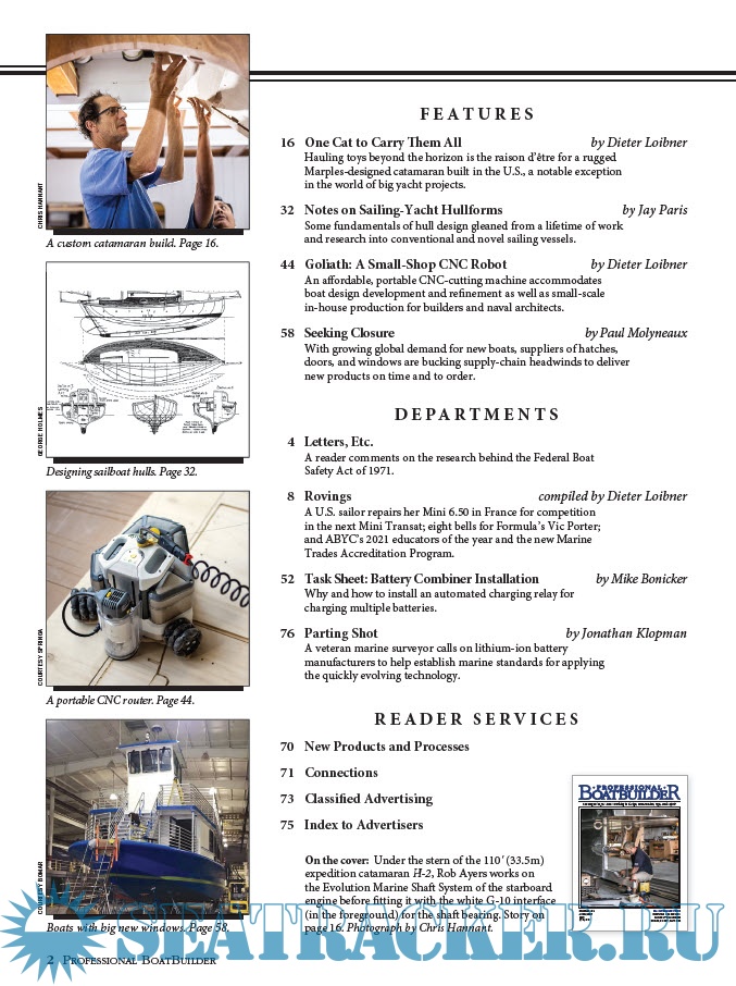 Year: 2022 Language: english Author: Professional BoatBuilder Genre: Periodical (magazine) Edition: Number 196 / April-May Format: PDF Quality: eBook Pages count: 82 Description: Professional BoatBuilder magazine is written and edited for boatbuilders, repairers, designers, and surveyors.Published six times a year, by WoodenBoat Publications, Inc., it focuses on materials, design, and construction techniques and repair solutions chosen by marine professionals.Regular technical articles provide detailed, real-world examples to improve the efficiency and quality of their work. Professional BoatBuilder has an audited circulation of 24,000 readers, worldwide.