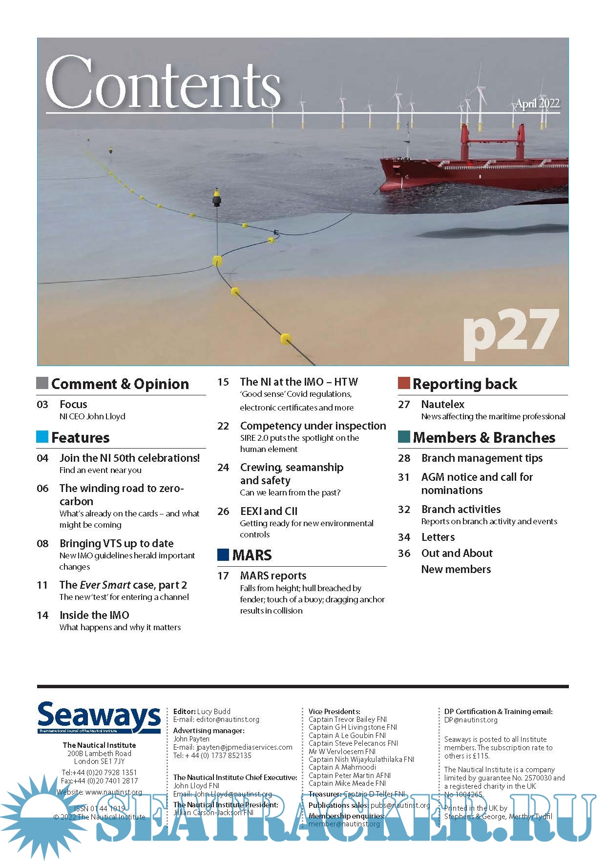 Year: 2022 Language: english Author: The Nautical Institute Genre: Periodical (magazine) Format: PDF Quality: eBook Pages count: 40 Description: Edition April, 2022 Seaways Recognised as one of the leading maritime journals, Seaways is sent out to all members monthly. It is the international journal of The Nautical Institute and has the most vibrant professional correspondence section to be found anywhere in the industry.