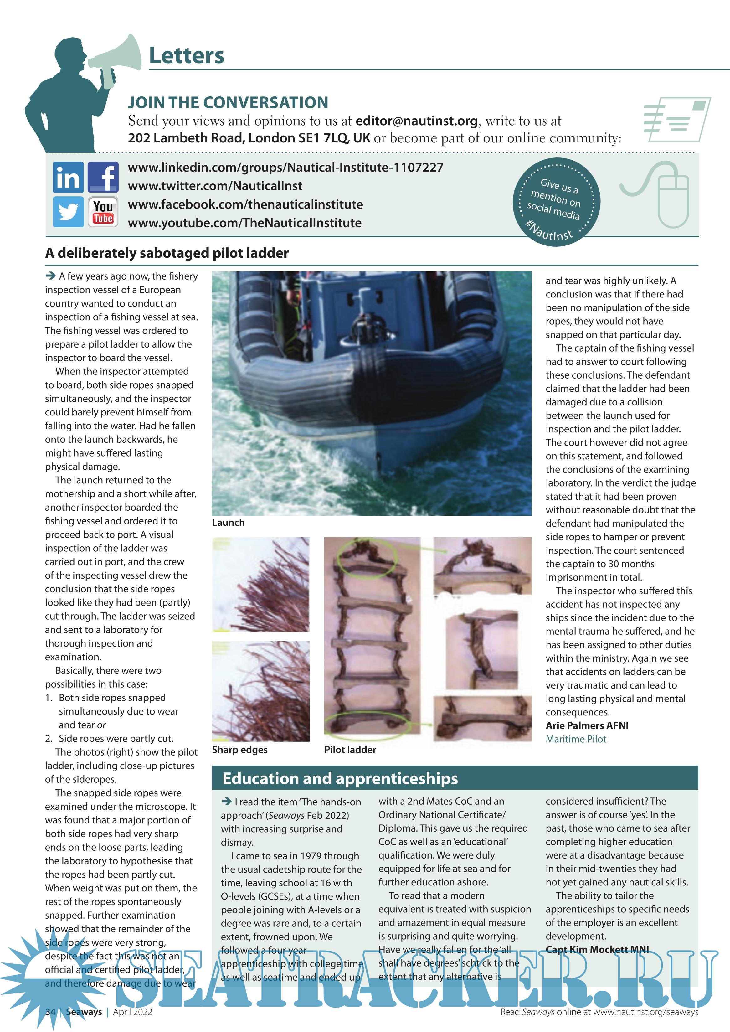 Seaways Recognised as one of the leading maritime journals, Seaways is sent out to all members monthly. It is the international journal of The Nautical Institute and has the most vibrant professional correspondence section to be found anywhere in the industry.