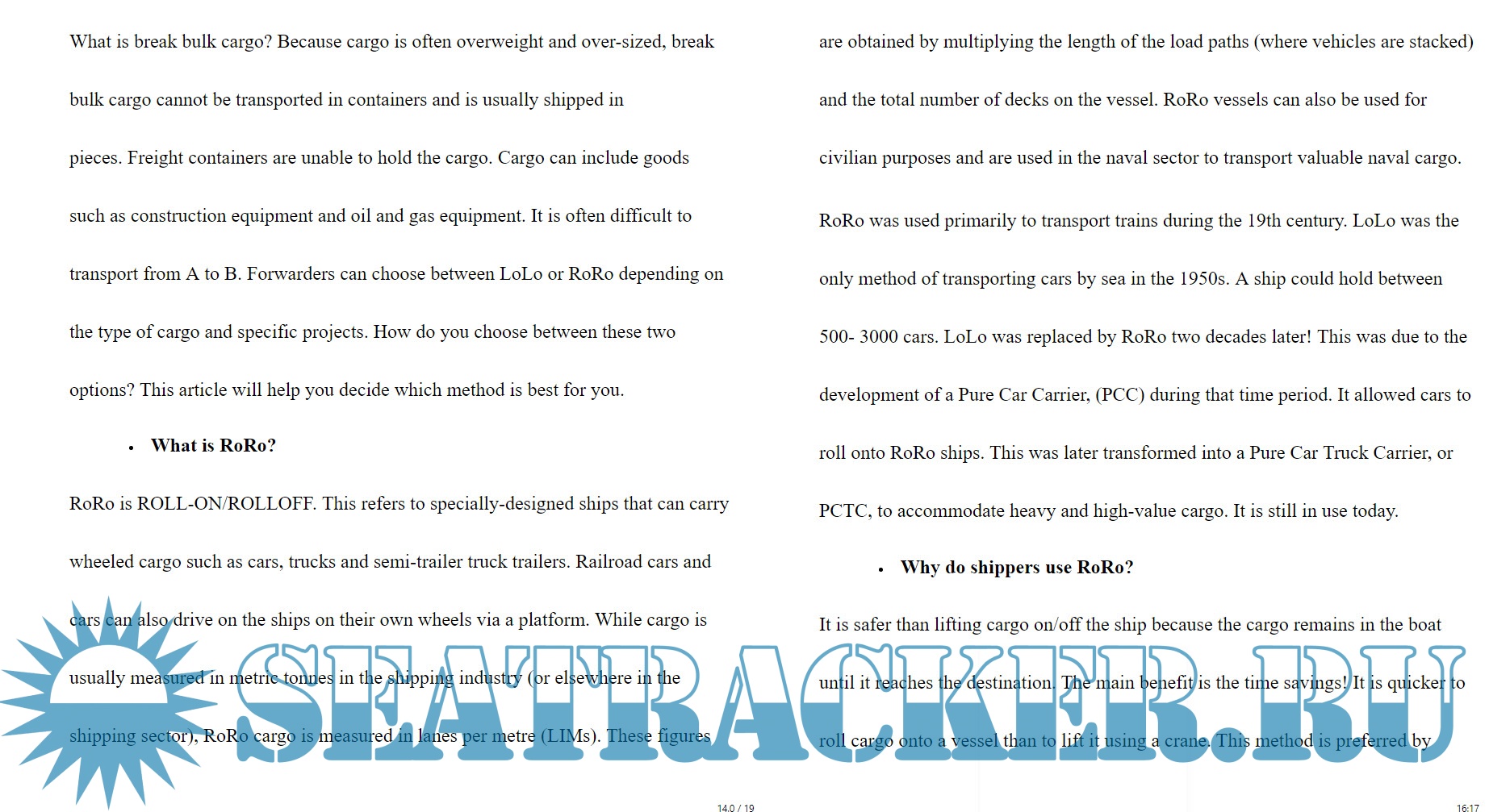 Year: 2021 Language: english Author: Reeta Pal Format: EPUB Quality: eBook Pages count: 19 Description: Breakbulk ocean shipping can be used to transport cargo that is too large for standard-sized shipping containers. Instead, cargo is carried in boxes, bags, crates or drums. Or it is simply rolled and lifted onto a ship or barge. Reels and rolls, steelgirders, structural and heavy steel are all common breakbulk items. Although containerization is the most popular method of shipping, breakbulk is seeing an increase in interest from shippers who have oversized items. Global Security predicts that bulk and breakbulk will account for half of all cargo entering or departing the U.S. in 2020. Breakbulk is not expected to see major changes. Therefore, the requirements on port infrastructure, vessel safety and law enforcement will continue to be stable. These are the top 4 benefits of breakingbulk shipping Ability to transport heavy and bulky items that can't be carried in a container. Reduced time spent on reconstruction and deconstruction so items can be shipped immediately. You can ship goods to smaller ports than those that are normally unable or unwilling to handle larger containers ships and tankers. You don't need to ship goods together in one container. Cargo that is too big, heavy or out-of-gauge Breakbulk shipping is a great option for equipment and goods that are difficult to transport or too large. The shipper does not have to break down the product in order to put it into a box or bin. Instead, he can send the entire item. A breakbulk ship typically has high-capacity deck cranes that can load or unload heavy or oversized goods. High deck strength barges can be used to load this cargo, by rolling it onto the vessel.