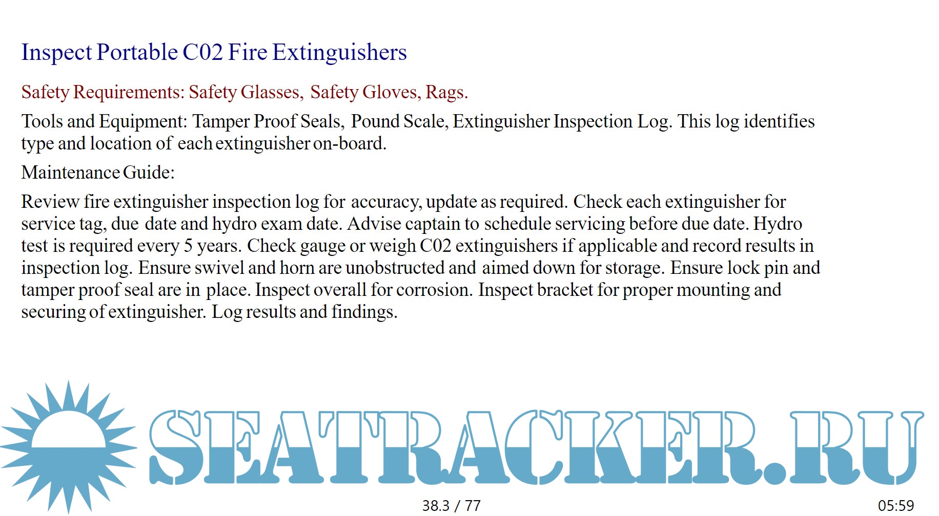 Description: Follow this plan to easily pass any inspection including Subchapter M, Responsible Carrier Plan or Coast Guard inspection. You will learn daily, weekly, monthly, quarterly, semi annual, and annual procedures. Each maintenance procedure comes with easy to follow instructions and personal protection safety guidelines. You will now know what maintenance is scheduled to be done and how to do it. It is a road map, to guide you, each day of the year.