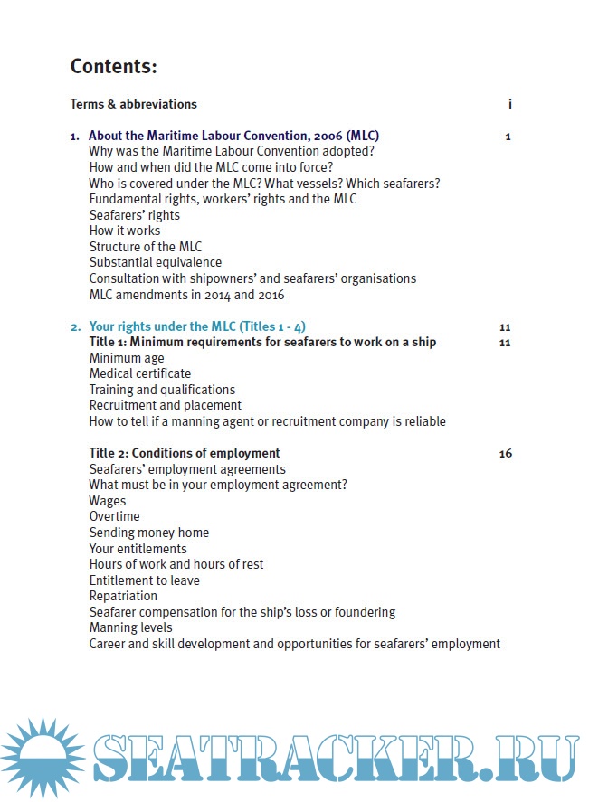 Year: 2017 Language: english Author: ITF Genre: Guide Publisher: The International Transport Workers’ Federation (ITF) Format: PDF Quality: eBook Pages count: 81 Description: The Maritime Labour Convention, 2006 (MLC), otherwise known as the Seafarers’ Bill of Rights, incorporates and builds on sixty eight existing maritime labour conventions and recommendations, as well as more general fundamental principles, to ensure decent working and living conditions for all seafarers. A list of these conventions is included for reference at the end of this book. Some important conventions not included are those relating to seafarers’ identity documents (ILO 108 and 185) and pensions (ILO 71). Additional info: Incorporating amendments in 2014 and 2016.