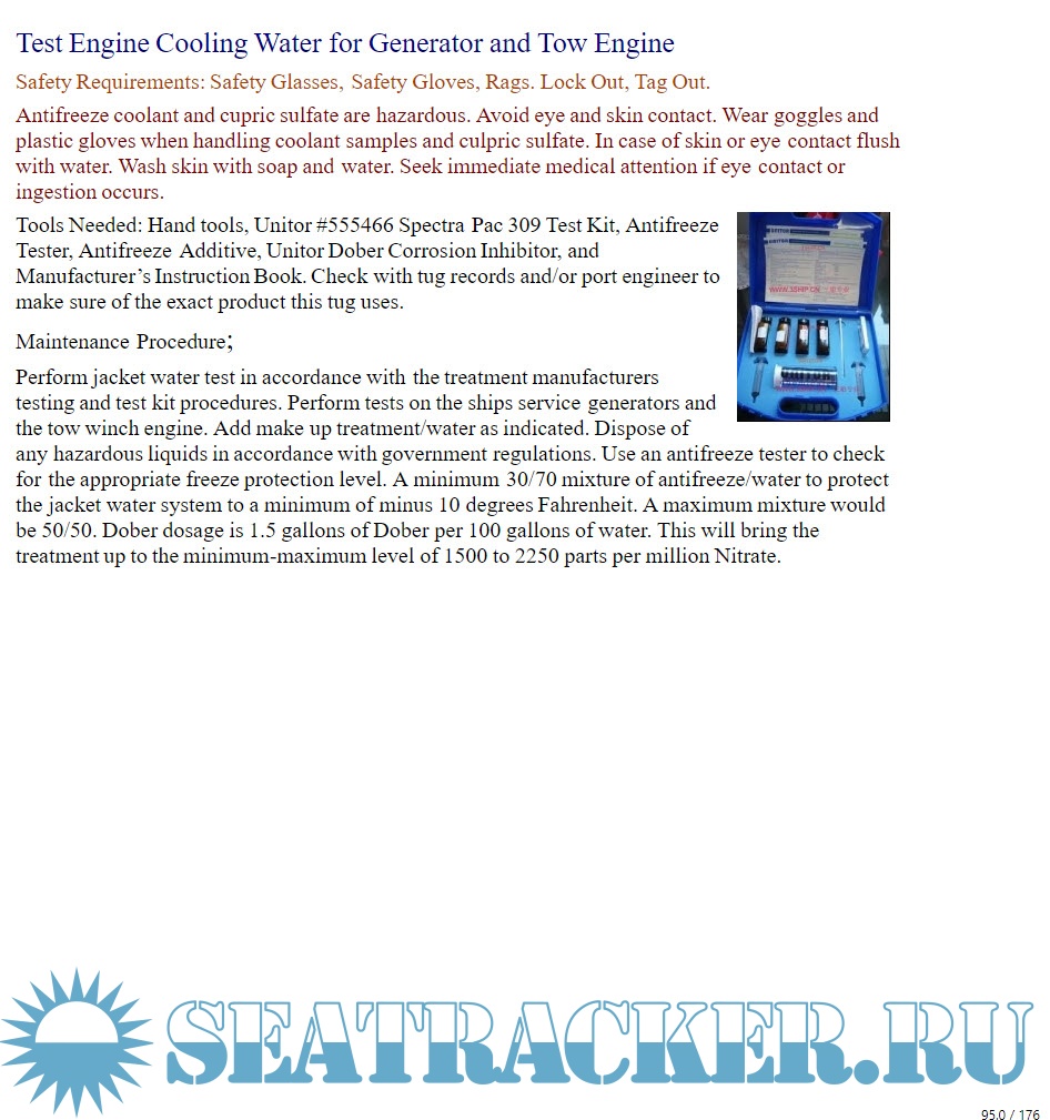 Description: Follow this plan to easily pass any inspection including Subchapter M, Responsible Carrier Plan or Coast Guard inspection. You will learn daily, weekly, monthly, quarterly, semi annual, and annual procedures. Each maintenance procedure comes with easy to follow instructions and personal protection safety guidelines. You will now know what maintenance is scheduled to be done and how to do it. It is a road map, to guide you, each day of the year.