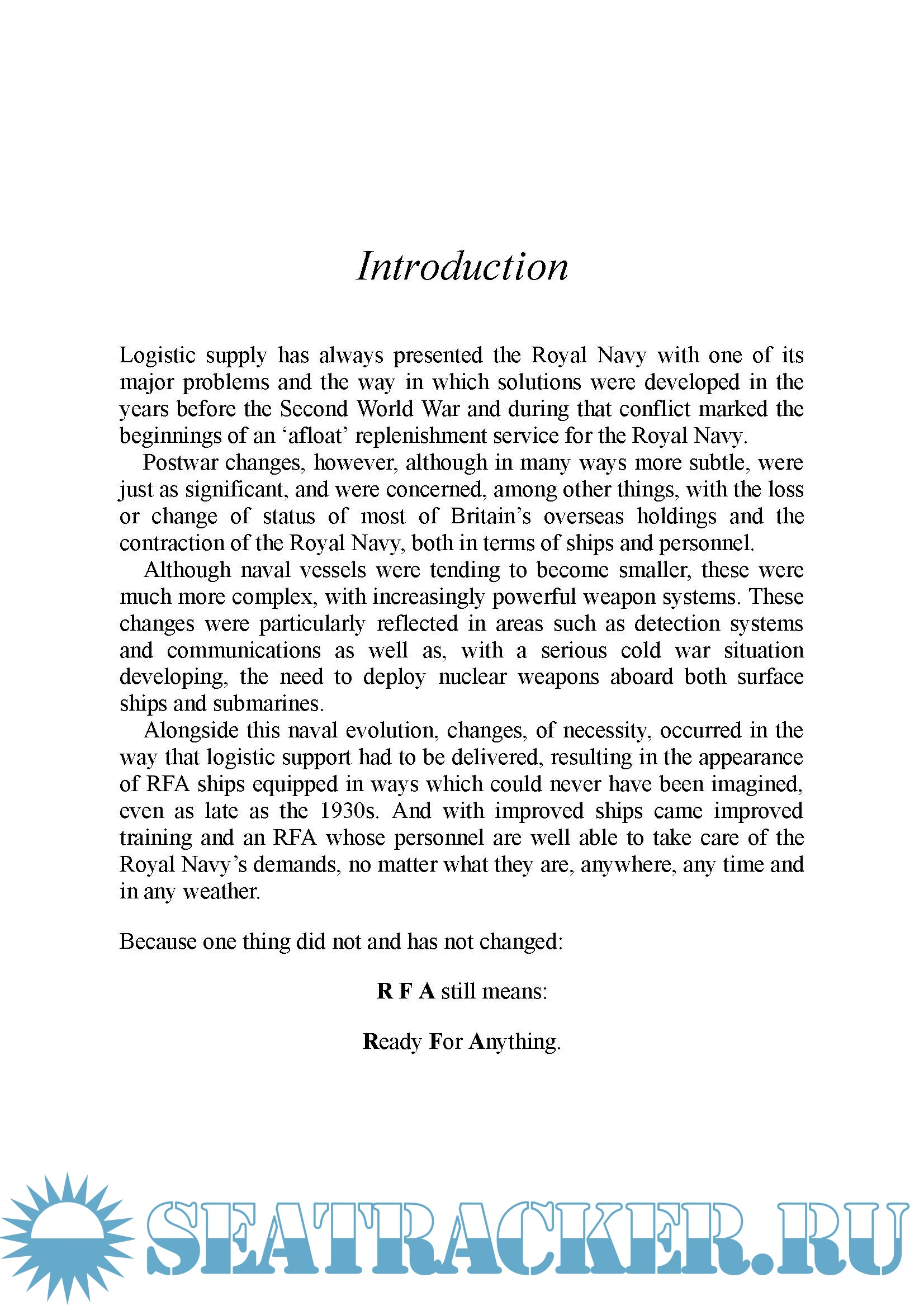 This book charts the veritable revolution that has overtaken the RFA since the end of the Second World War. New technology and techniques reflect the rapid growth in the importance of logistics in modern warfare, while the broadening role of the RFA is to be seen in the history of its operations, many of them little known to the public. Woven together from a combination of technical ship data, official correspondence and personal recollections, it is predominantly about the men and women of the RFA and their stories – an insight into the underreported history of a service whose initials unofficially translate as Ready For Anything.