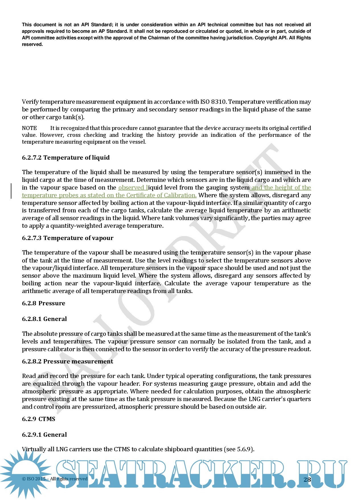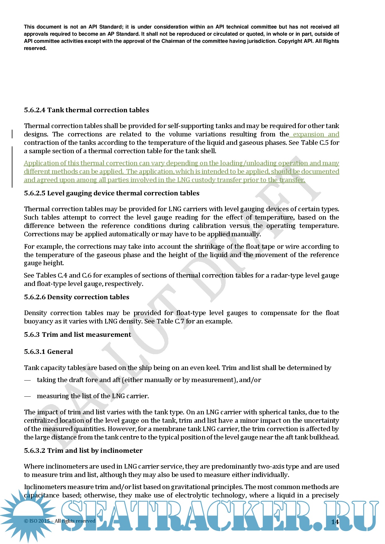 Description: ISO 10976-15 (Modified), Refrigerated light hydrocarbon fluids – Measurement of cargoes on board marine LNG carriers