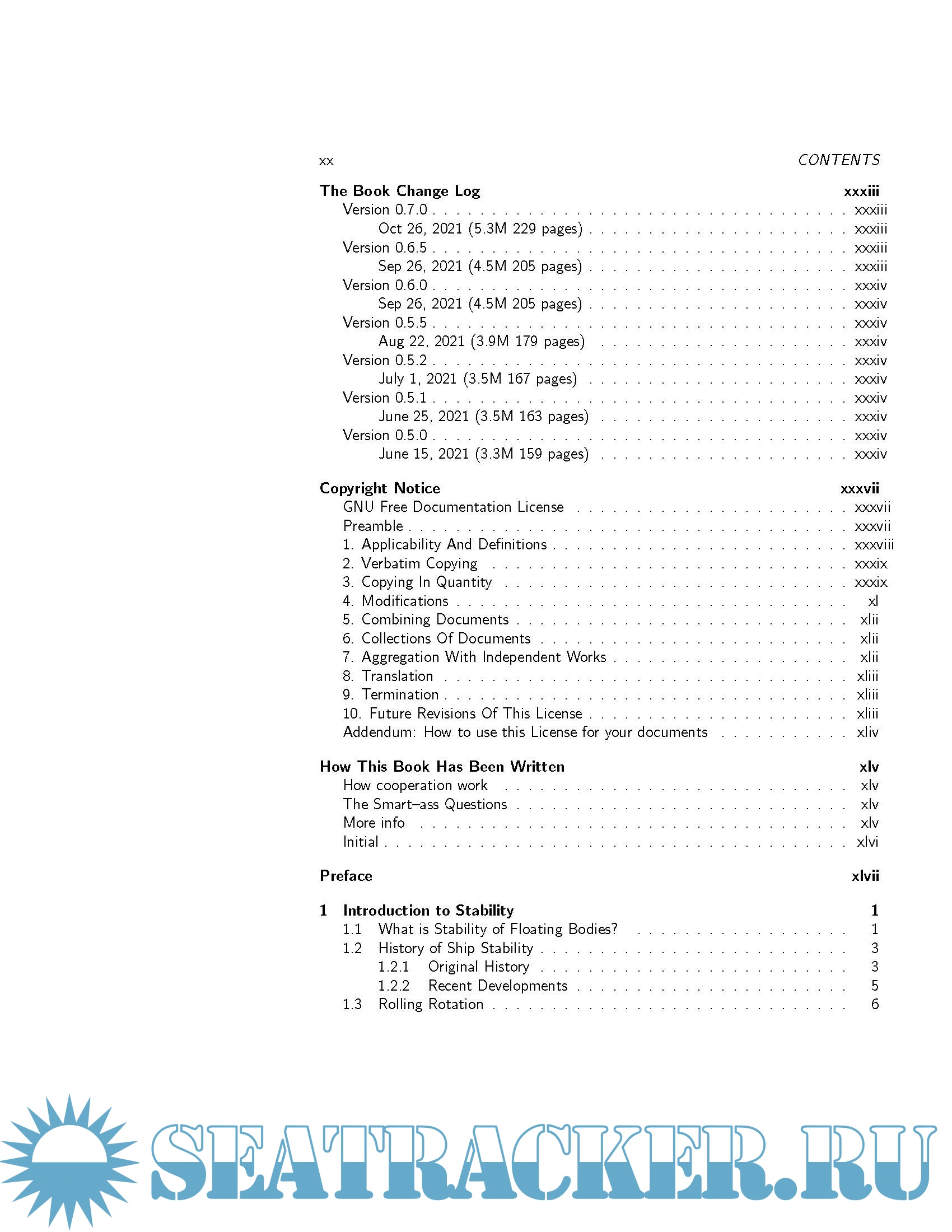Year: 2021 Language: english Author: Genick Bar-Meir Genre: Technical book Edition: Version 0.7.0 January 8, 2022 Format: PDF Quality: eBook Pages count: 249 Description: This book contains innovative ideas. In fact, the book creates a revolution in the understanding of ship stability. One of the chief problems in ship stability is the rolling (ship rotation) which was treated in the past as a simple pendulum with damping (or without) with external forces (waves, wind etc). This common mistake in this approach is rooted in the assumption that the location of the rotating point. Mistakenly, it was assumed that the rotation point is at the metacenter, an imaginary point which measures the ship's stability. In fact, all the books on stability, that were examined, believe in this mistake. This book also describes the physical transfer mechanism from one rotation mode (like roll) to another (like pitch). The reason that this developments are first depicted in this book is because of the new direct examination method. This innovative method also has a byproduct that shows a way to calculate the centroid of a circular segment. Nevertheless, the new technique to calculate the centroid is extremity far from being the main and only advantage.