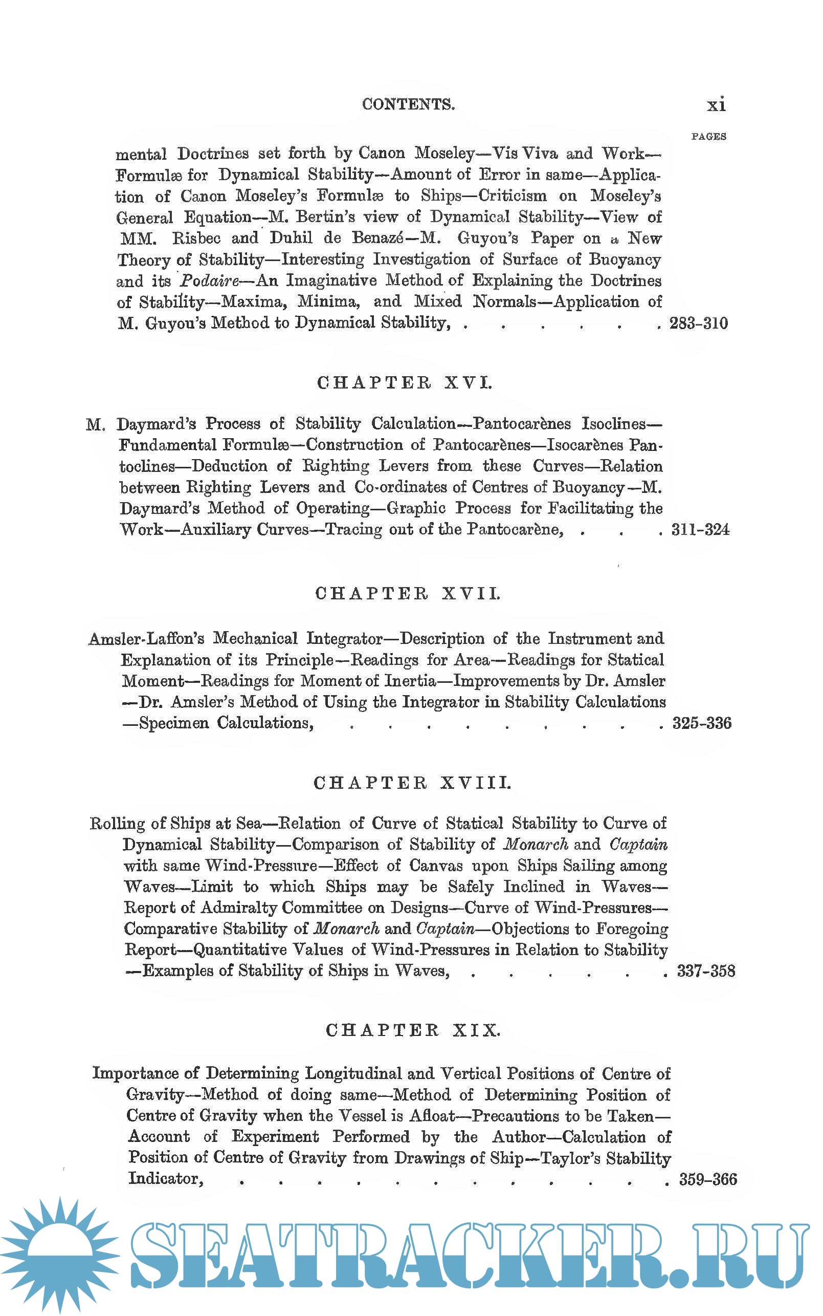Description: THE stability of ships is a subject that has attracted considerable attention of late. Many disasters have happened to ships through insufficient stability, and have caused scientific men as well as practical naval architects to apply themselves to a renewed and close investigation of the subject. The result is that the ideas which till late prevailed respecting it are seen to be often superficial and incomplete, and in some cases not entirely free from error.