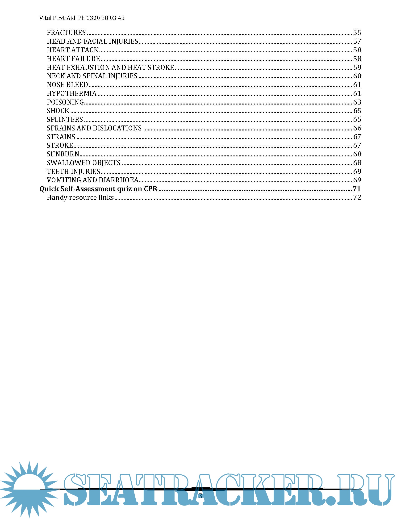 Year: 2019 Language: english Author: Vital First Aid Training Services Genre: Practical guide Format: PDF Quality: eBook Pages count: 74 Description: Vital First Aid is designed to be as simple and accessible as possible. You will find the step-by-step instructions throughout and the A to Z listing of accidents and sudden illnesses in the second section make it easy to follow, even in an emergency. The first section of the book (Emergency, First Aid and Safety Procedures) provides essential information on treating medical emergencies, such as unconsciousness, absence of breathing and blood circulation failure. The second section of the book (A to Z of Injuries and Illnesses) provides chapters, organised alphabetically for easy reference, on the most common major and minor sudden medical occurrences that you may have to deal with.