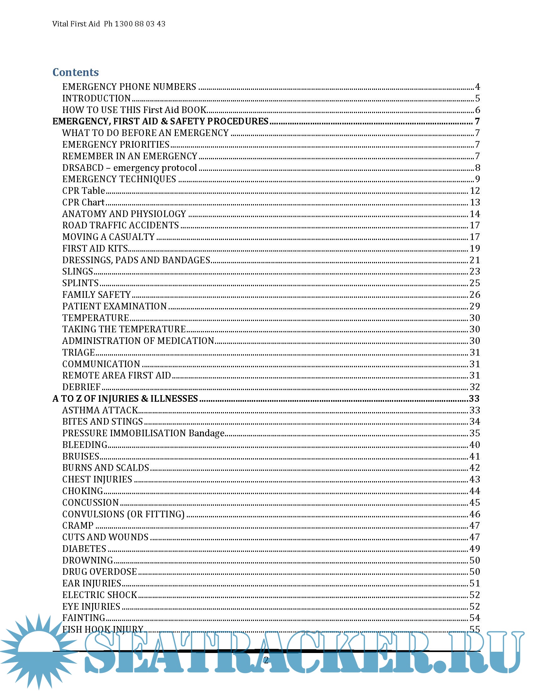 The first section of the book (Emergency, First Aid and Safety Procedures) provides essential information