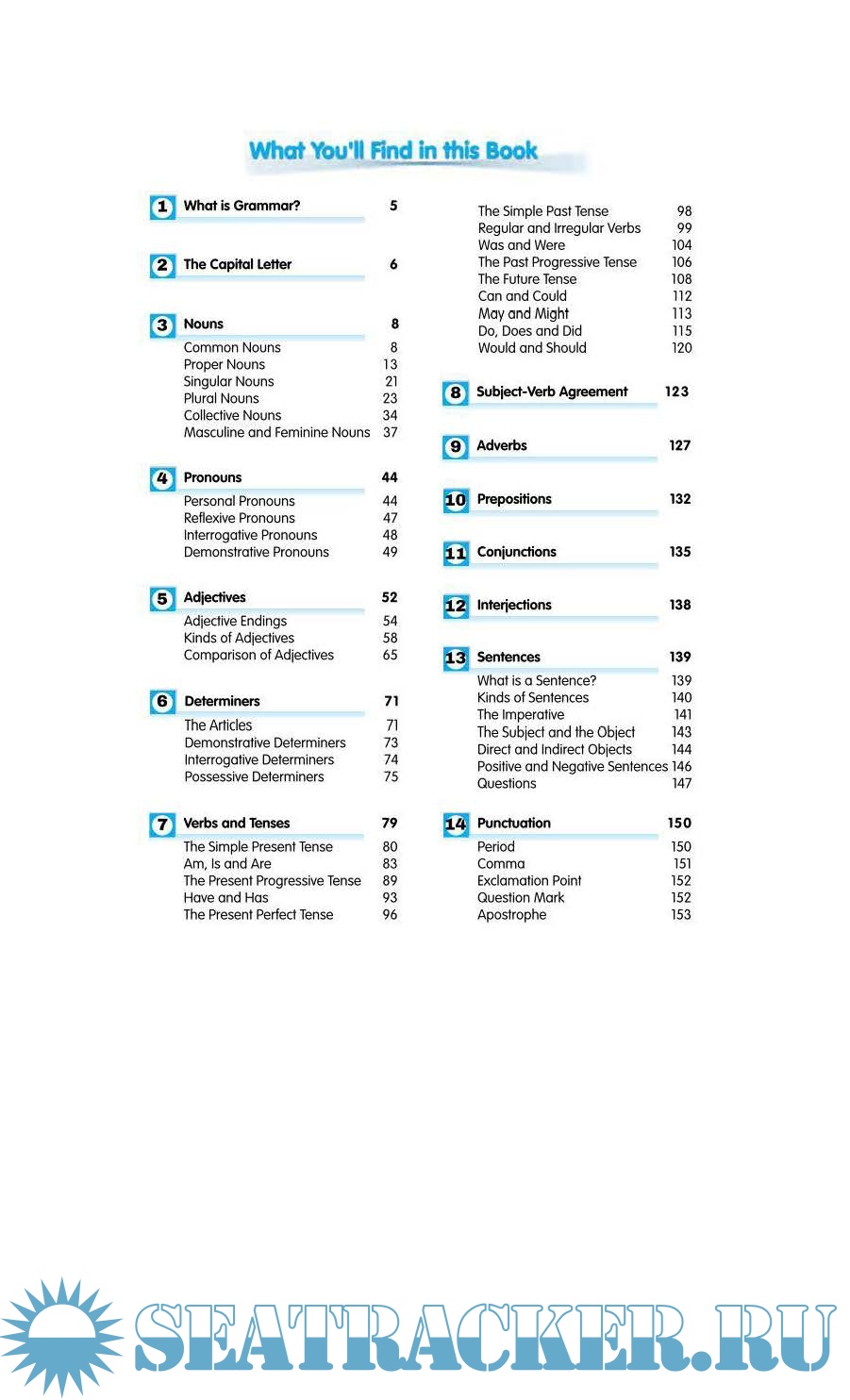 • Illustrated lessons are tightly focused on core concepts of grammar