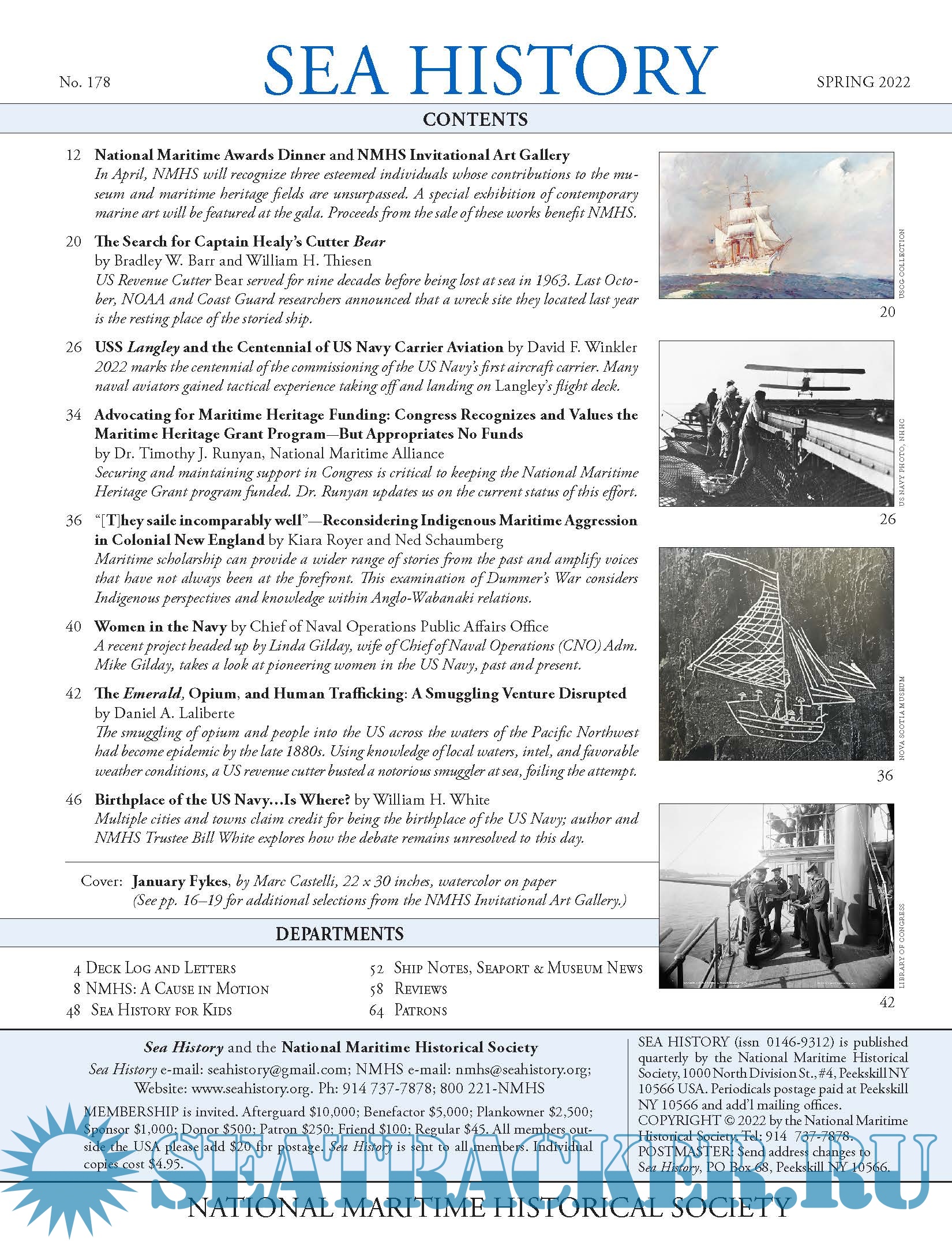 Our seafaring history comes alive in the pages of Sea History, the National Maritime Historical Society’s quarterly magazine. The pre-eminent journal of advocacy and education in our field, Sea History covers the world of maritime museums, sail training, key events and people in our maritime past, and the stories of everyday sailors past and present, and marine archaeology, with a national focus and an international scope, as well as these regular features.