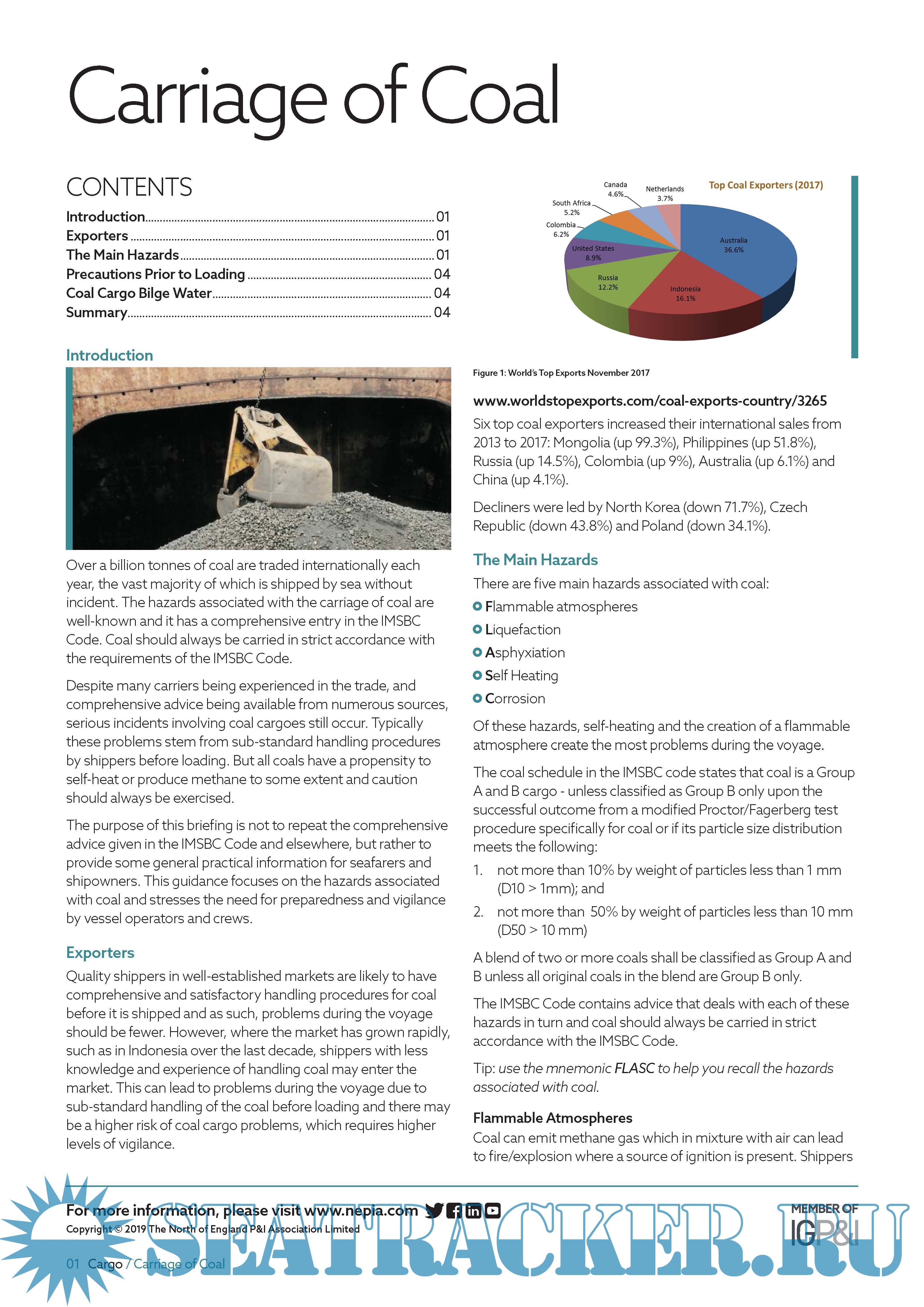 Cargo Advice - Coal cargoes - The Swedish Club [2021, PDF]