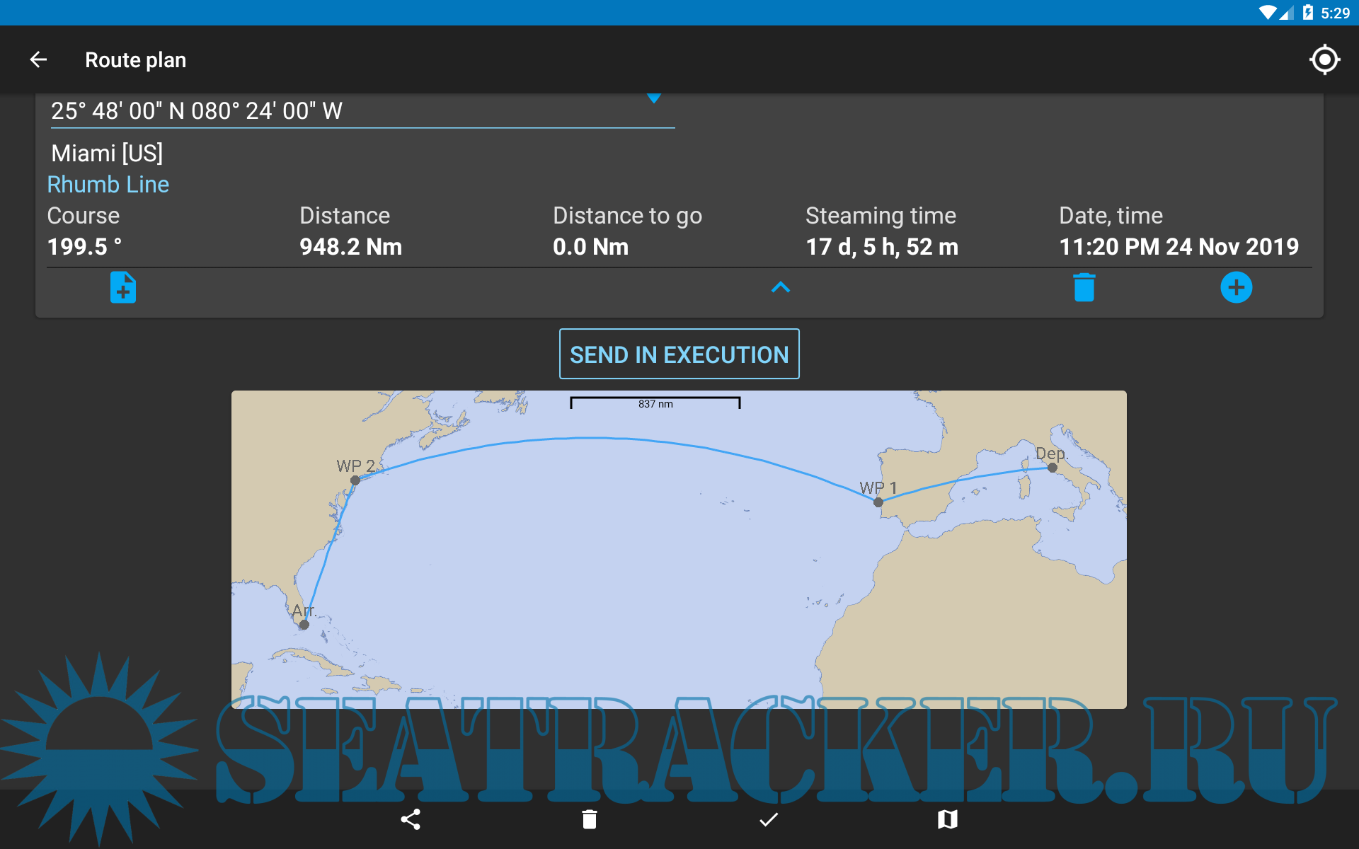 - Follow on same Rhumb Line route