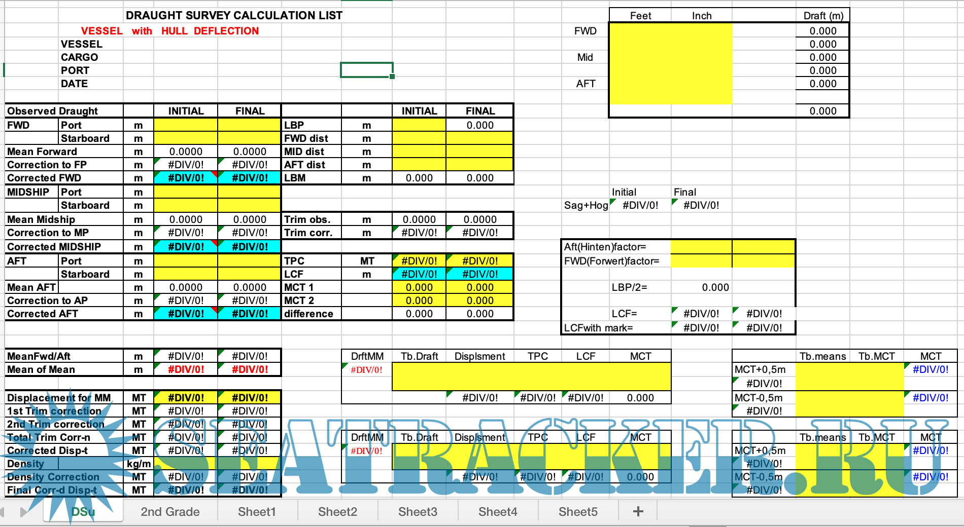 Description: MS EXCEL spreadsheets for draft survey calculations: