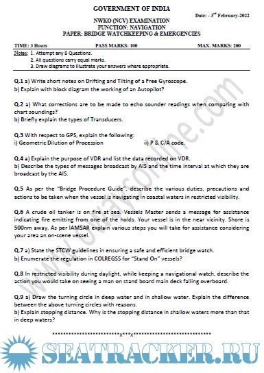 Question Paper Set for NCV (NWKO) Mercantile Marine Department (MMD), India Examinations