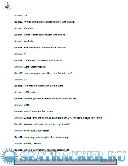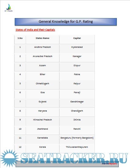 Description: General Knowledge Questions Bank for General Purpose (G.P.) Rating.