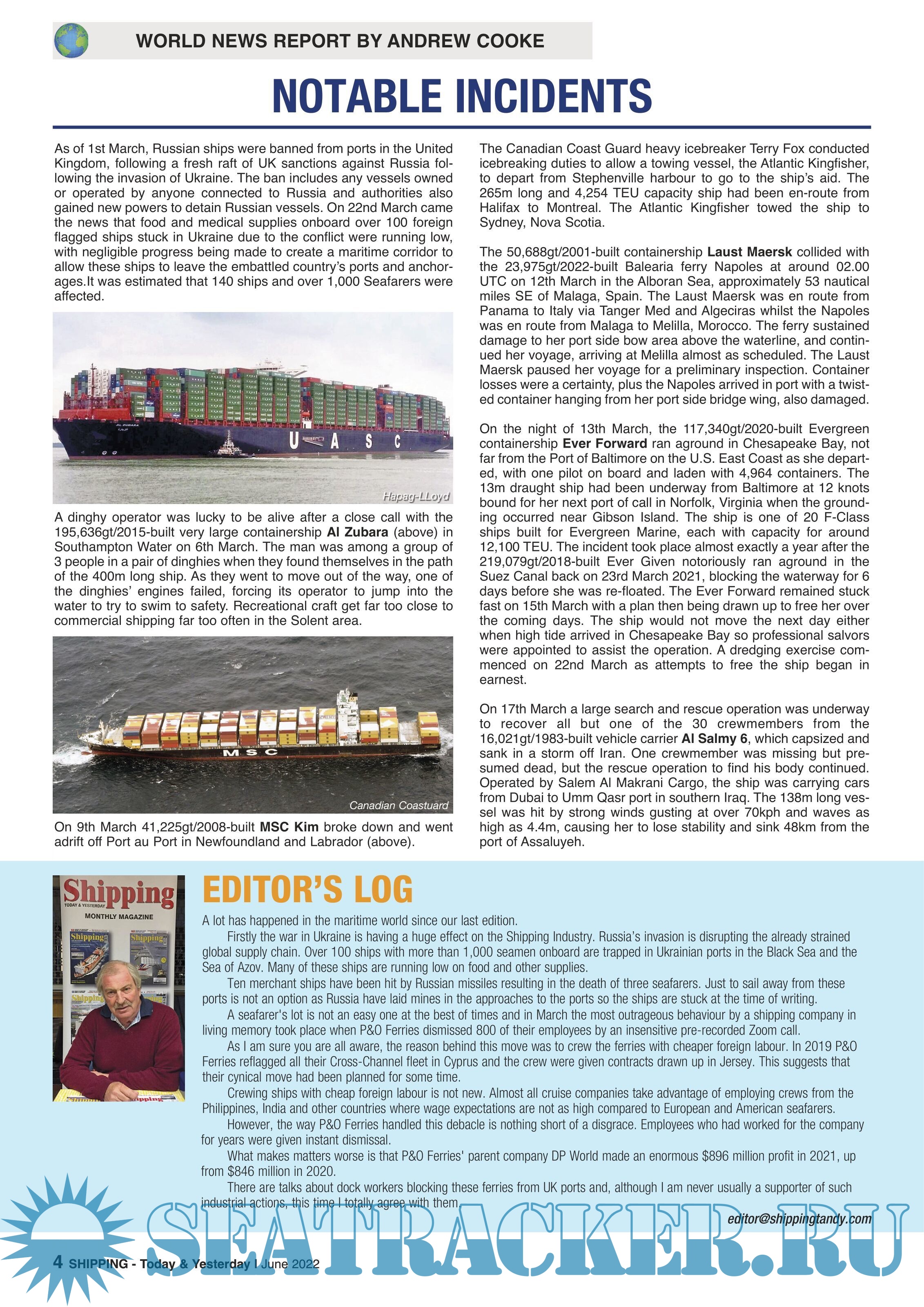 Shipping Today & Yesterday was first produced in March 1990 by, the then Editor and Publisher, John Young. The first edition stated that it would, “offer a news service covering important developments in the Shipping industry Today and will look back at ships and events of Yesterday, with regular features on merchant ships.”