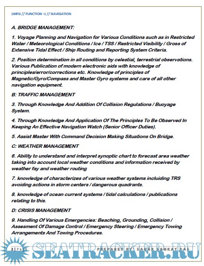 Description: Chief Mate (FG) Orals Note - Function 1: Navigation.