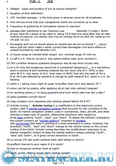Description: Kolkata MMD Surveyor Question for Chief Mate - Fucntion I