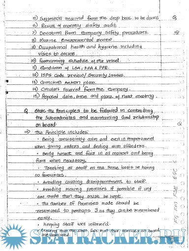 1. Life Saving and Fire Fighting Appliances 2. Dock Labour Regulations 3. ISM Code, ISPS Code, STCW Code, MLC Code 4. Management of Safety and Emergencies 5. Contingency Plans for Emergencies 6. Planned Maintenance Schedule 7. Helicopter Operation