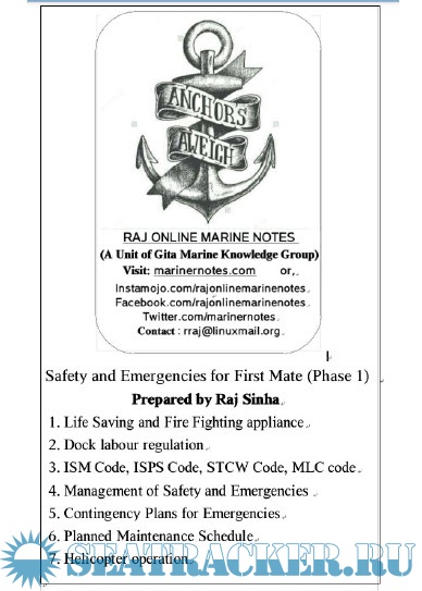 Year: 201x Language: english Author: Raj Online Marine Notes Format: PDF Quality: Scanned pages Pages count: 163 Description: Safety and Emergencies for First Mate (Phase I) compiled by Raj Sinha.