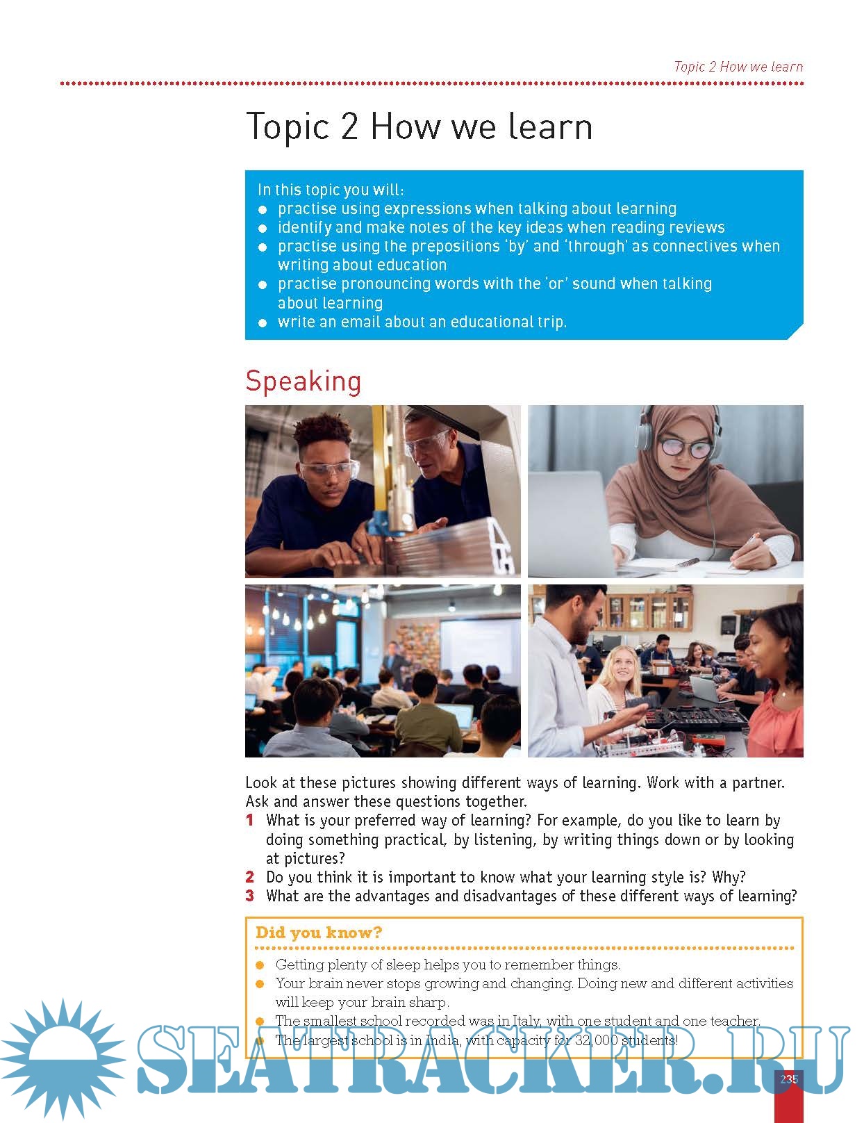 skill sections are activities to develop your language skills and vocabulary. You will have the opportunity to use the