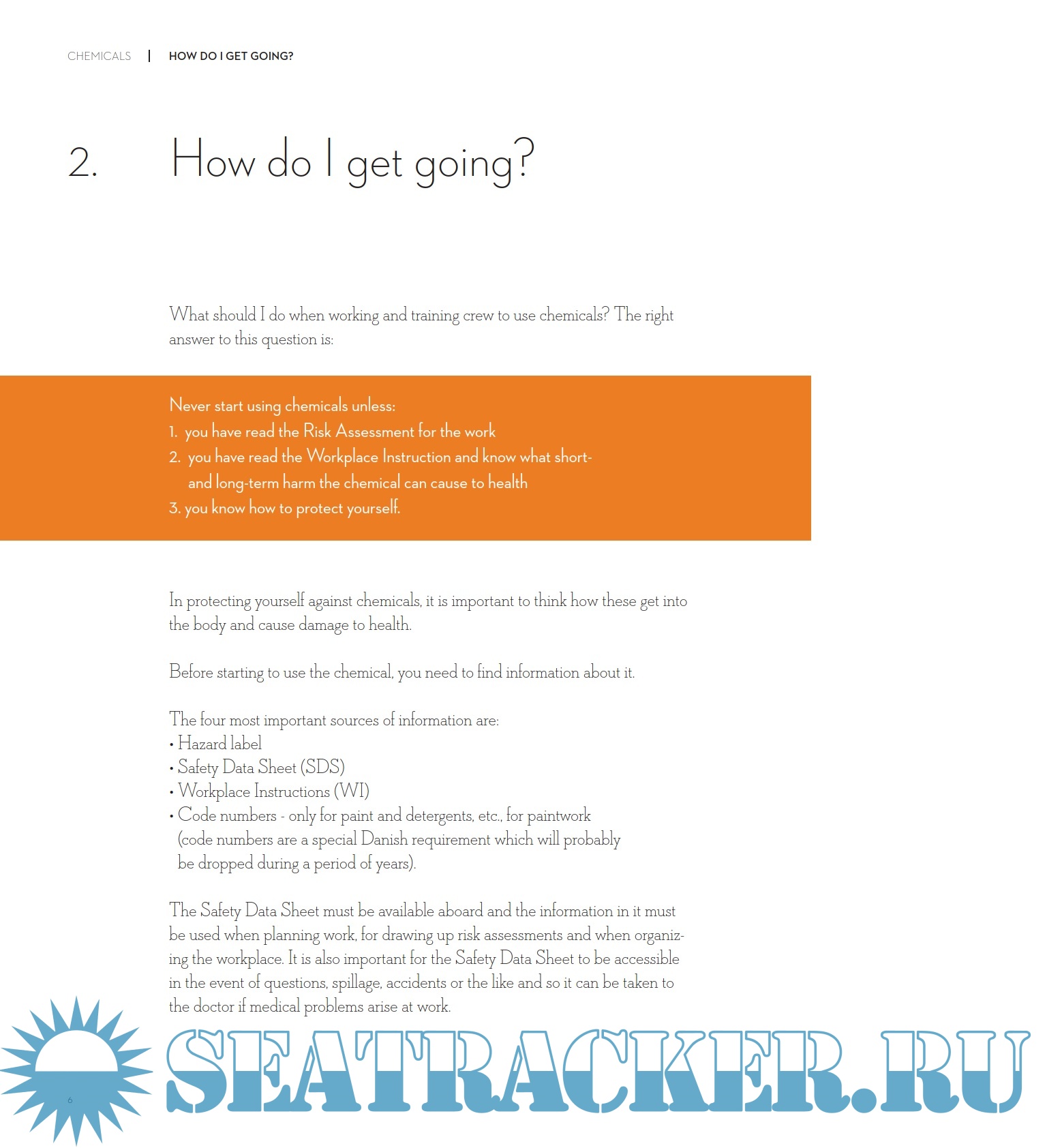 Year: 2012 Language: english Author: Seahealth Denmark Genre: Practical guide Publisher: Seahealth Denmark ISBN: 978-87-92084-25-5 Format: PDF Quality: eBook Pages count: 88 Description: Take care of yourself and others - from knowledge to practice. This instructor booklet tells you where you can find what you need to know about the chemicals you use and how you should use this knowledge to plan and carry out work so you do not get injured or suffer short or long-term harm.