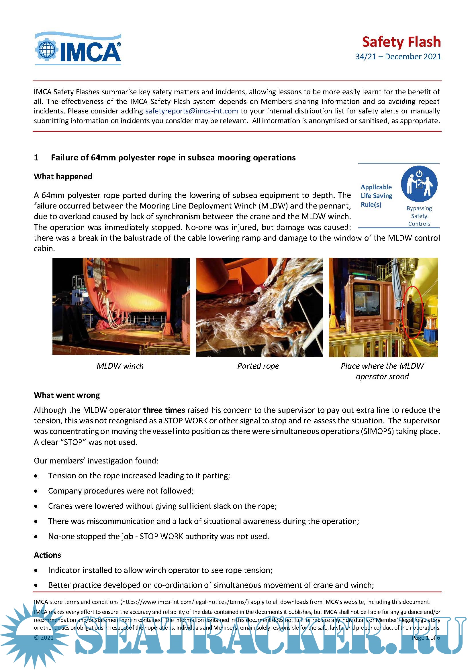 Safety Flash (issue 27/22) - IMCA [2022, PDF]